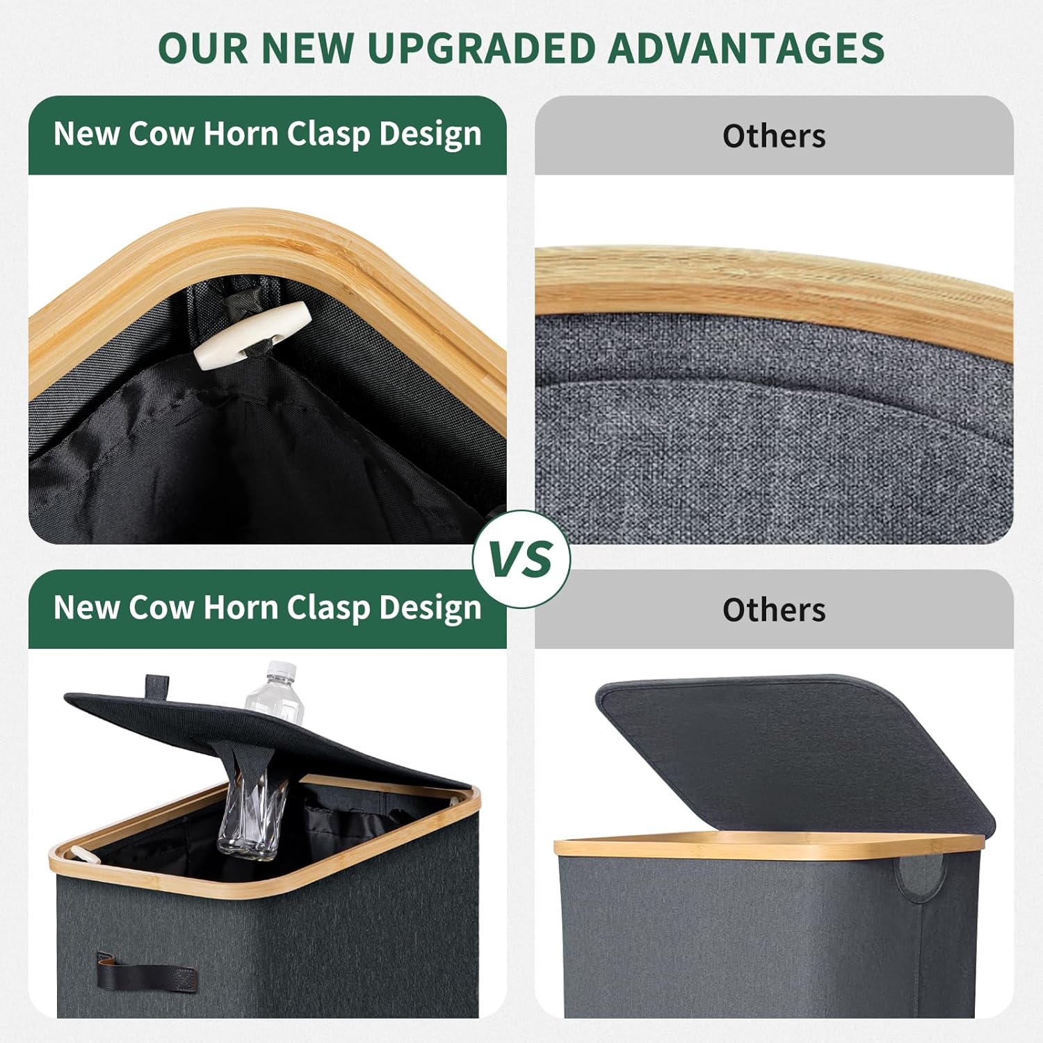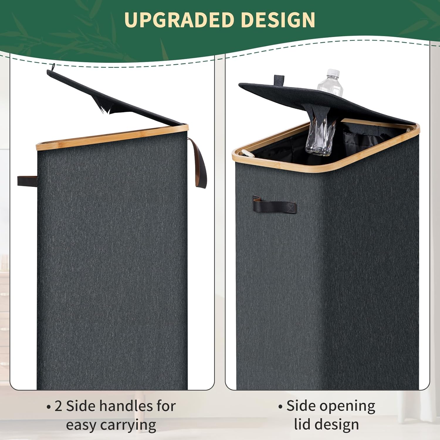 • MULTIFUNCTIONAL RECYCLING BIN- Leather carrying handles on both sides allow for easy handling. In addition to as kitchen recycle bin, our indoor recycling bin can also be used to store dirty clothes, old newspapers, pet supplies or toy baskets