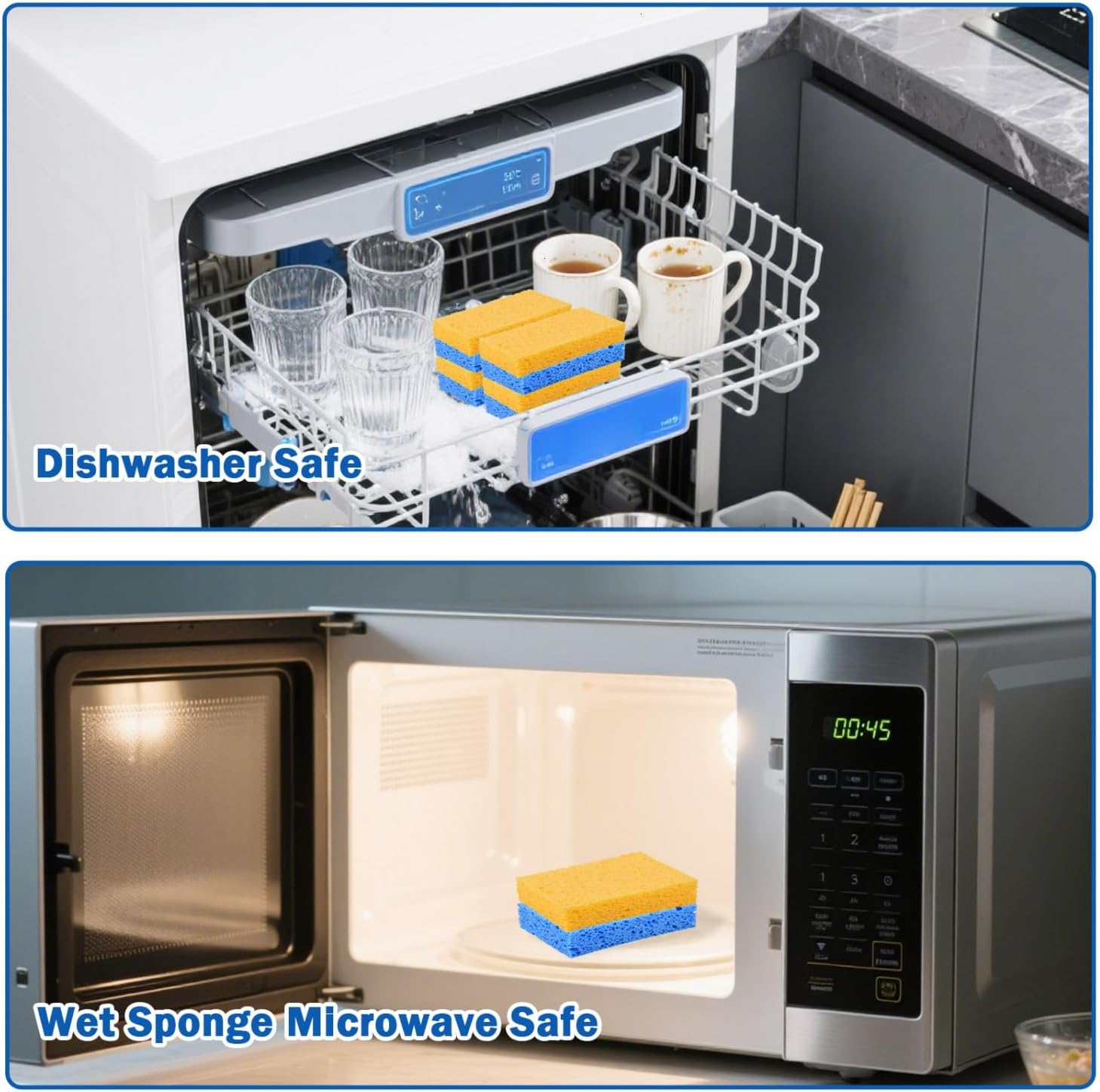 • Natural Sponges: The blue and yellow dish sponges kitchen pack is made from 100% wood pulp, fully biodegradable, and compostable
