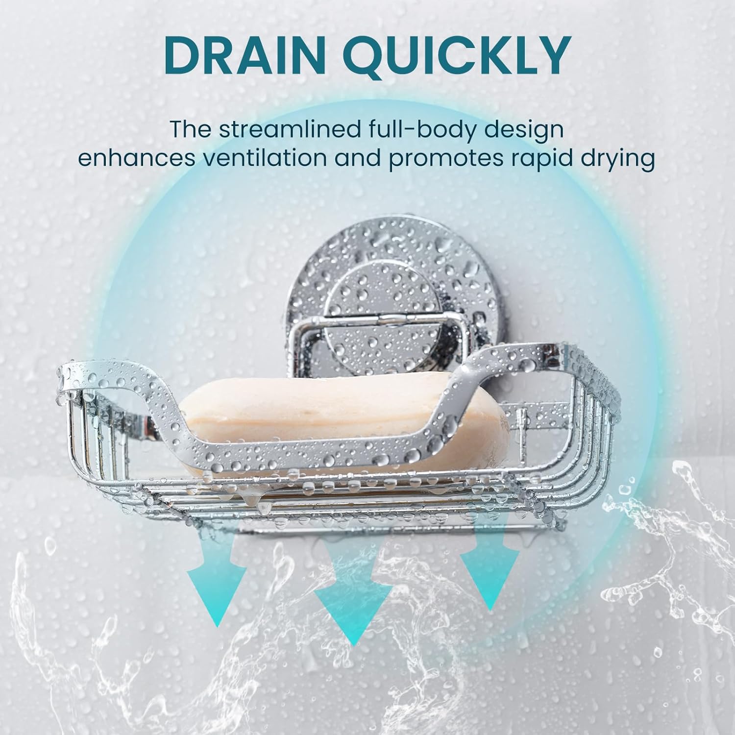 • STRONG SUCTION & DURABILITY: Soap dish shower is made of premium rustproof metal material. Our suction cup of bar soap holder based on the bionics octopus sucker principle is made of anti-aging TPE material, which hold up to 11 lbs. and can be firmly attached to the smooth surface. Can be reinstalled and removed many times without damaging the wall and without leaving a trace