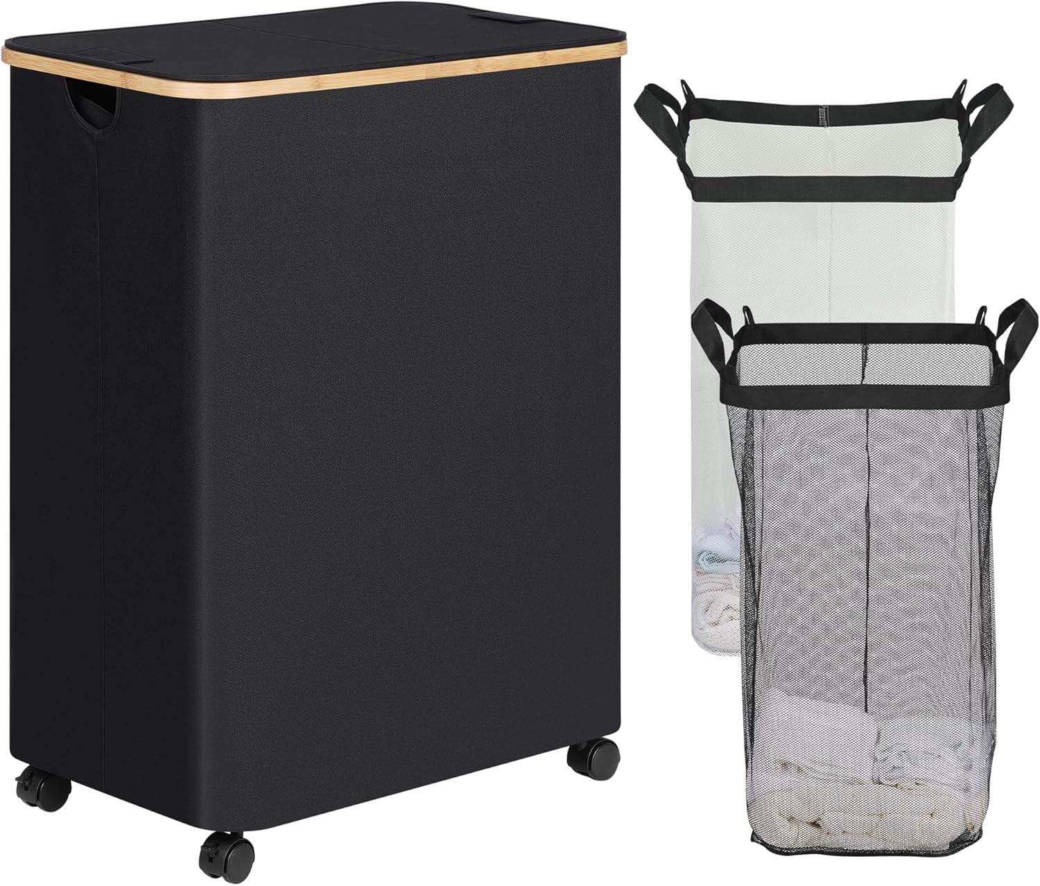 • 【Easy Sorting & Convenient】: The laundry basket has two compartments for easy sorting of dark and light clothes. It also comes with a removable inner mesh bag, you can take the clothes out without moving the whole hamper.