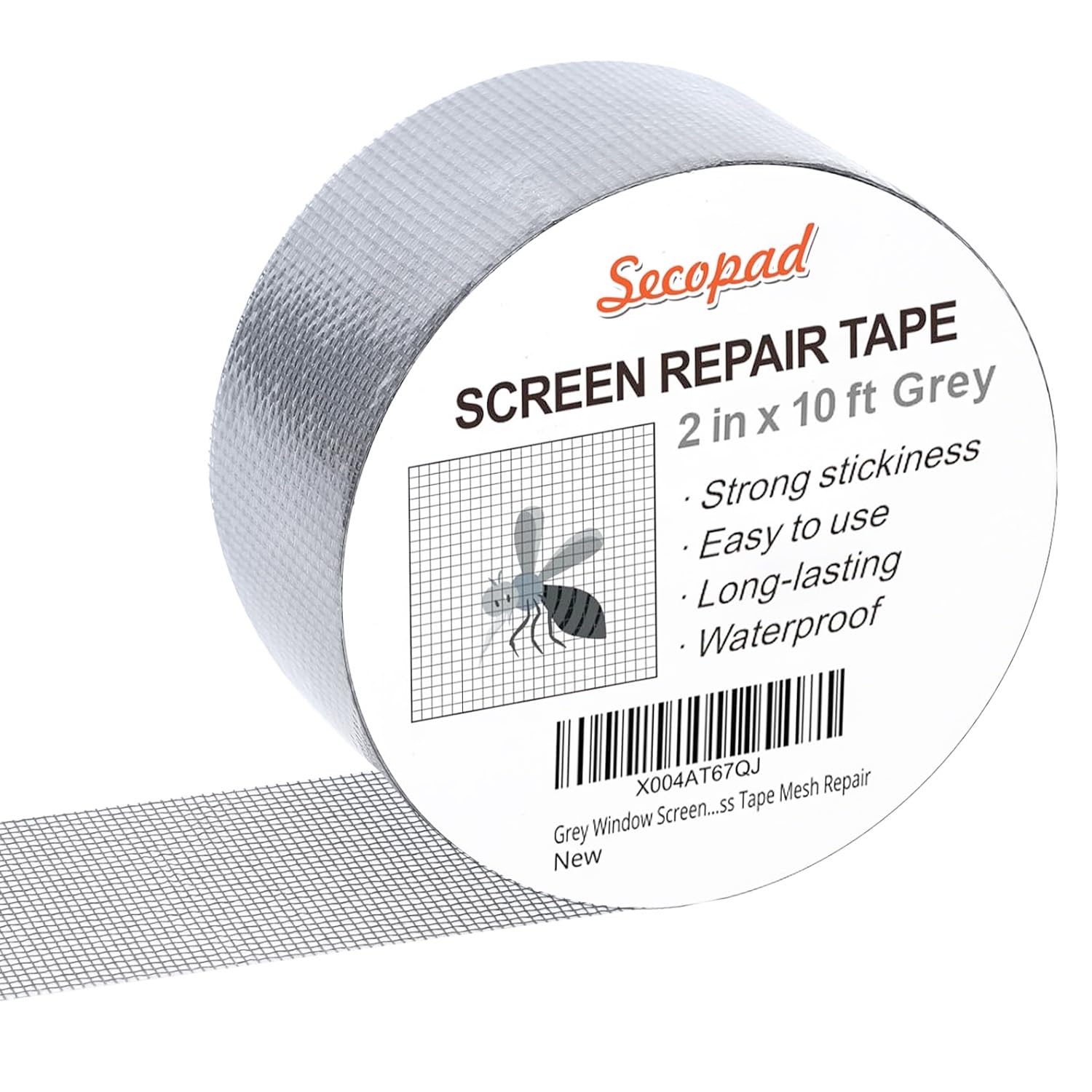 Grey Window Screen Repair Tape, 2IN X 10FT Screen Repair Kit for Windows or Doors, Strong Adhesive Fiberglass Mesh Patch Tape