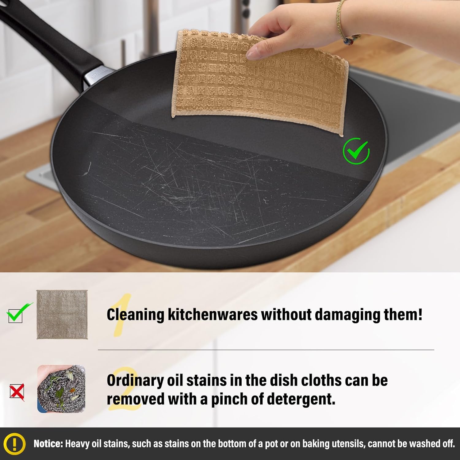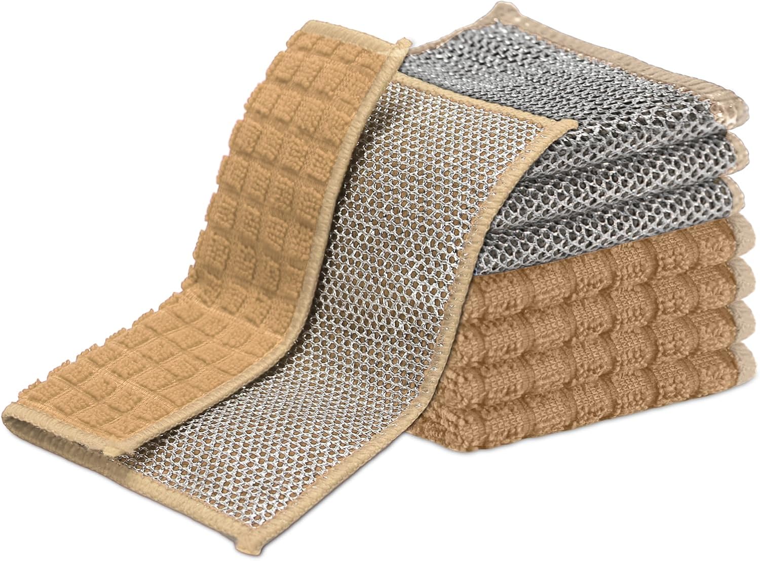 Dish Rags for Washing Dishes 8 Pack Multipurpose Wire Miracle Cleaning Coths Non-Scratch Wire Dishwashing Rag Lint Free Microfiber Cleaning Cloth for Kitchen Windows (Khaki)