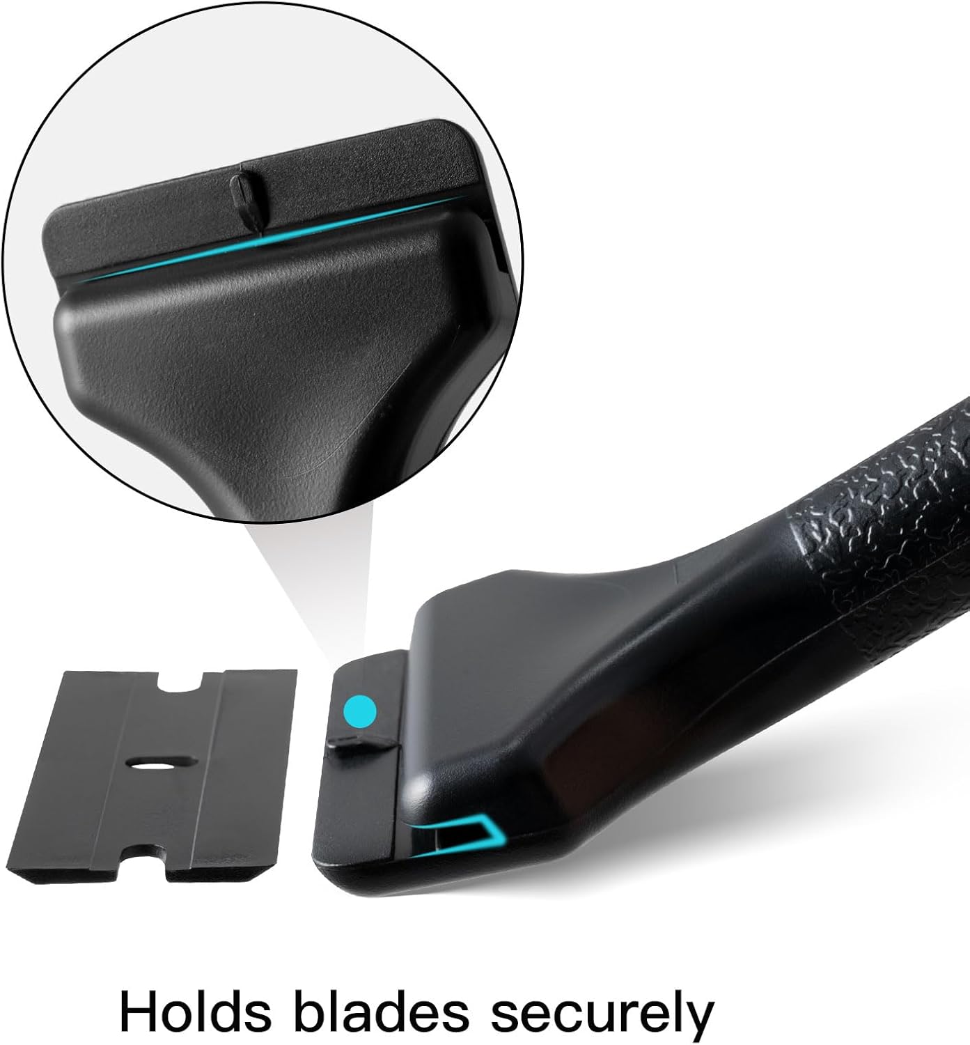 • PLASTIC SCRAPER TOOL includes 2pc plastic razor blades with long handle and 100pcs replacement plastic blades, giving you more durability and flexibility to complete heavy tasks. A safety sticker remover to work on glass, ceramic materials.