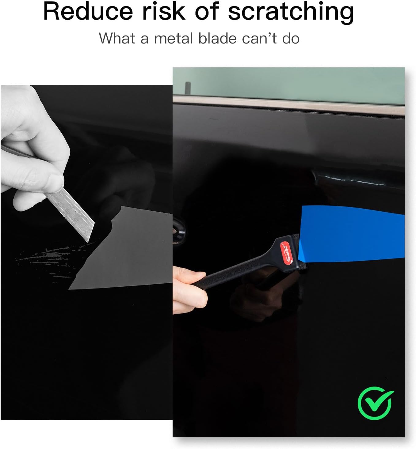 • STURDY SCRAPER: Plastic edge scraper made of durable ABS plastic, works greatly as a paint scraper, window scraper, glass scraper, vinyl scraper or floor scraper in cleaning task. Plastic razor blades can do the same jobs as the steel blades but without scratching finish or hurting your fingers.