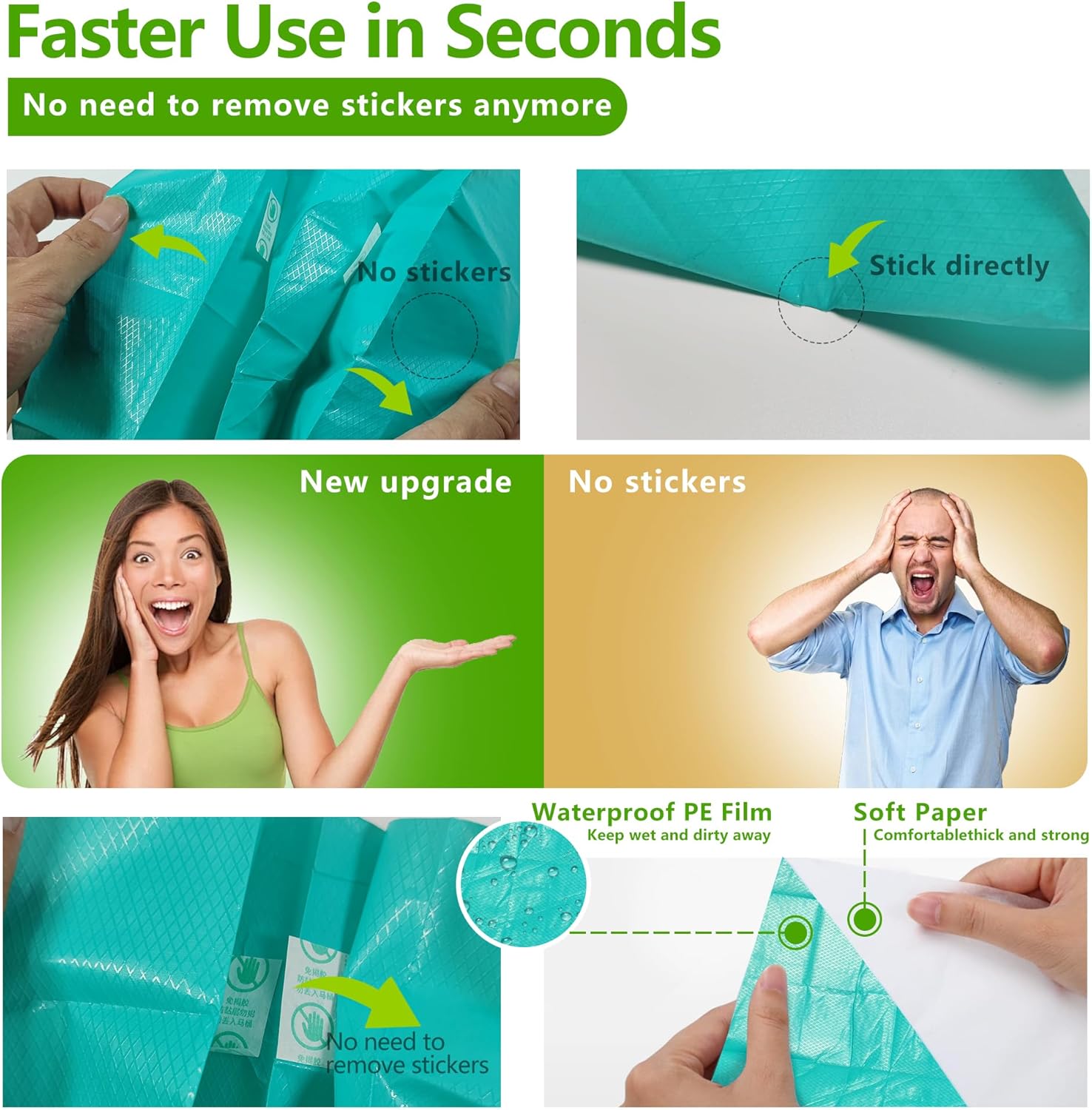 • [Quick and Easy Application] Our upgraded disposable toilet seat covers are designed for fast use—no need to peel off stickers. Just unfold and place directly on the toilet seat within seconds. No sticky residue is left behind, making the process quicker, more convenient, and hygienic
