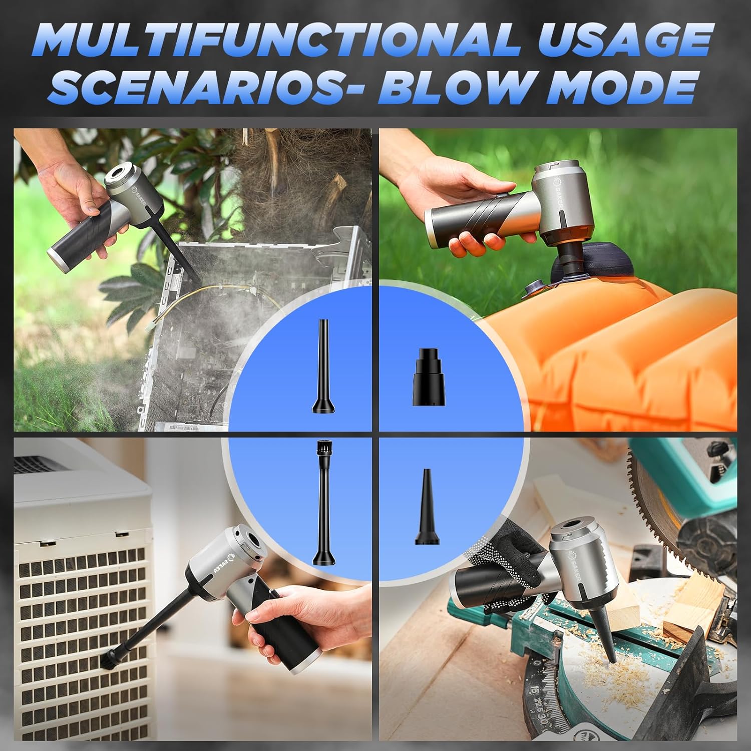 - 【Practical accessories】The cordless car vacuum cleaner includes the following accessories:Floor brush*1, Stainless steel filter screen*1,Air extraction nozzle*1, Short blowing nozzle*1,Flat suction brush*1,Long flat suction*1,Pipe blowing round brush*1,Long blowing pipe*1,Small and large inflator nozzle,Storage bag*1,USB charging cable*1. Rich accessories can make your life more convenient.