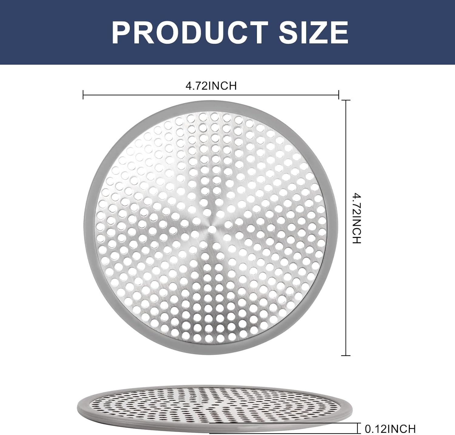• Stainless steel drain protector outside diameter 12cm(4.75"), Equipped with silicone edges to help secure and prevent hand damage, providing long-lasting protection against drainage blockages