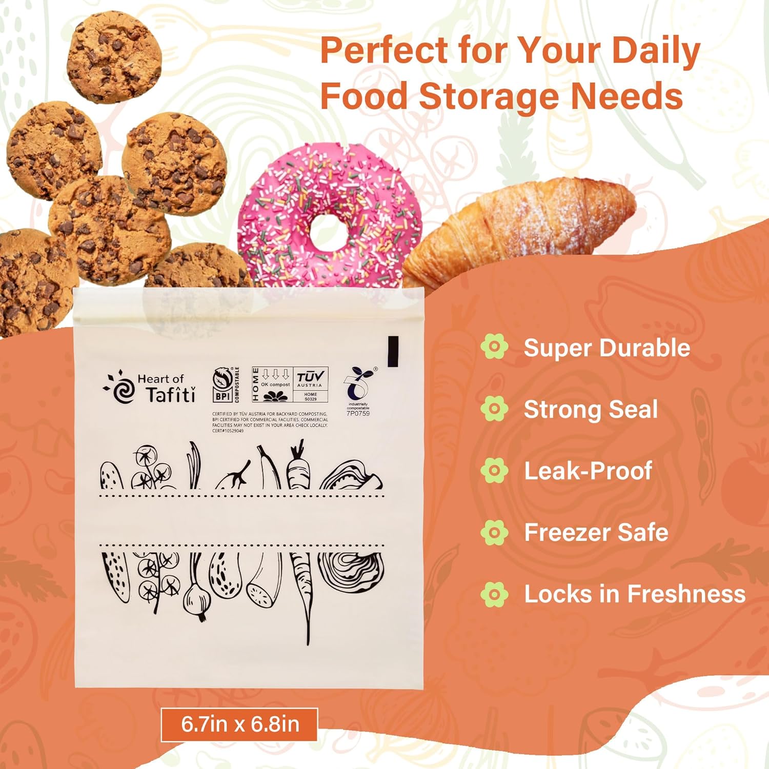 • 💕【Certified Compostable in U.S. & Europe】Heart of Tafiti resealable food storage bags are certified compostable, meeting the highest-rated standards, including ASTM D6400, European EN 13432, and BPI certification, ensuring they decompose in industrial composting facilities.
