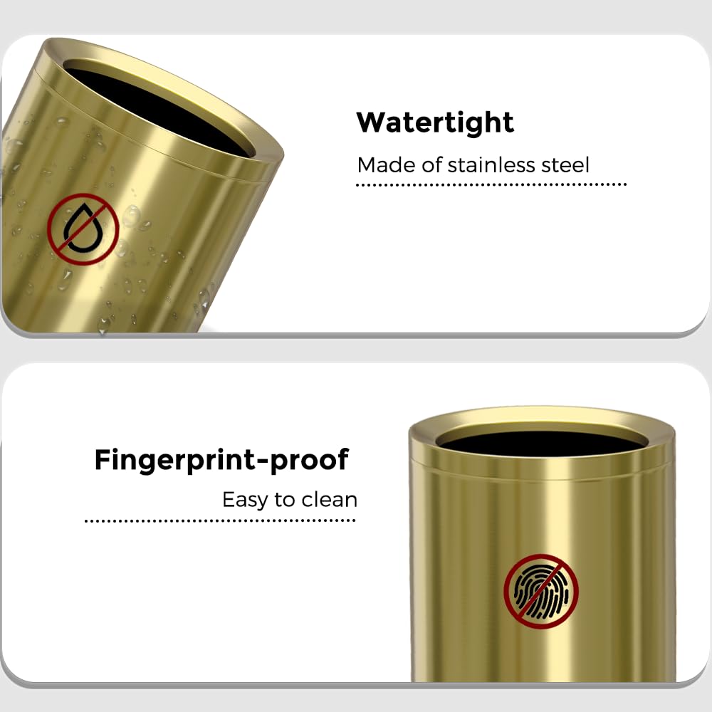 • [Metal material] : This garbage can is a double layer design, the outer layer is made of golden stainless steel, the inner layer is made of metal, and the double layer of metal makes the garbage can more thick and durable.