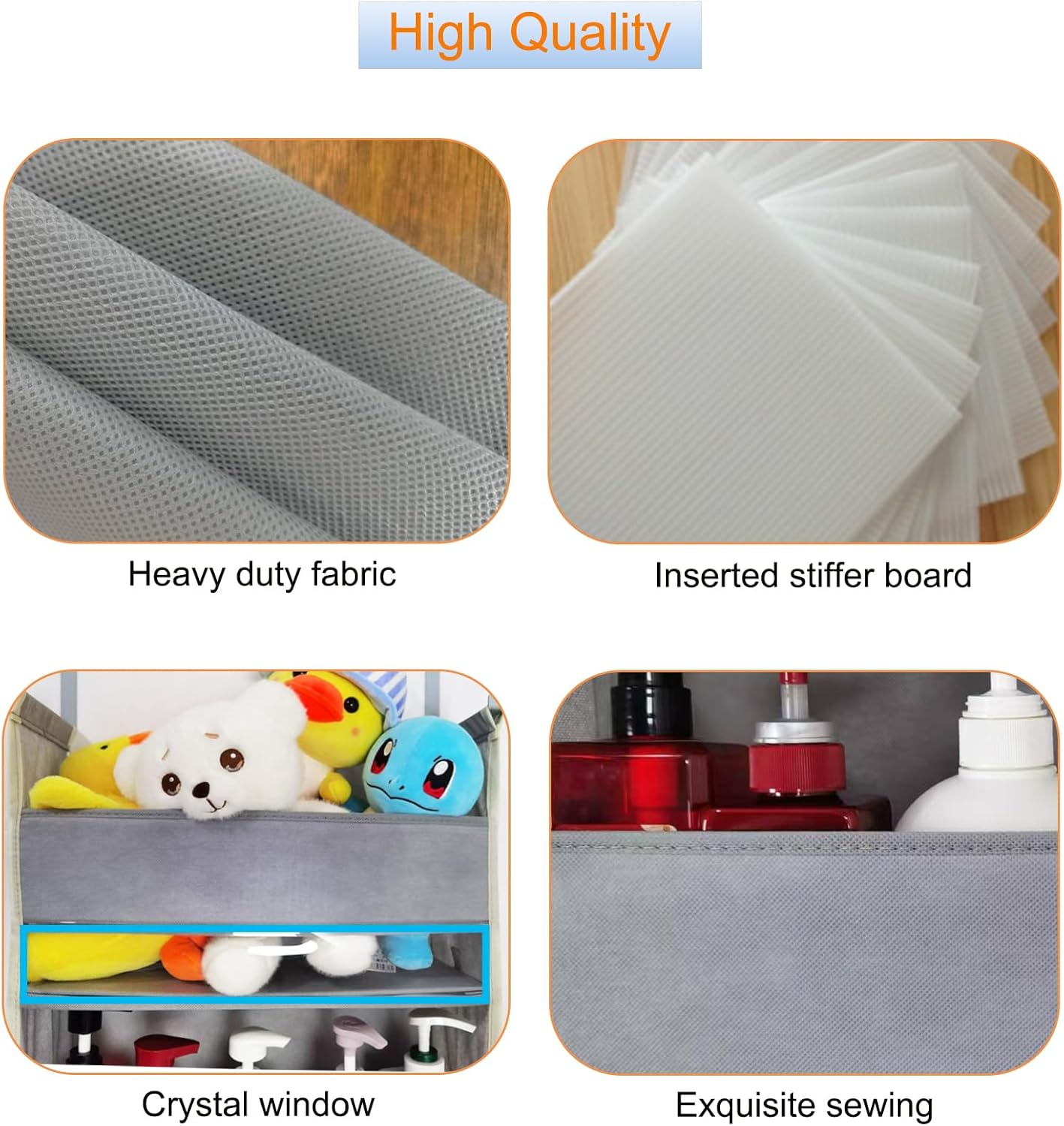 - 【STURDY QUALITY OF THE SHELF】the sturdy construction and the reinforced stitching of roomtalk 5 shelf over the door hanging organizer is durable well made with smell-less heavy duty fabric longevity and with stiffer board on the bottom of each section to help support items being put in, capable of holding multiple items and providing flexible storage options, the large cubby about 4.25" opening each can easily get things or items in or out, it ensures the organizer can fit heavier items without sagging or lose its shape.