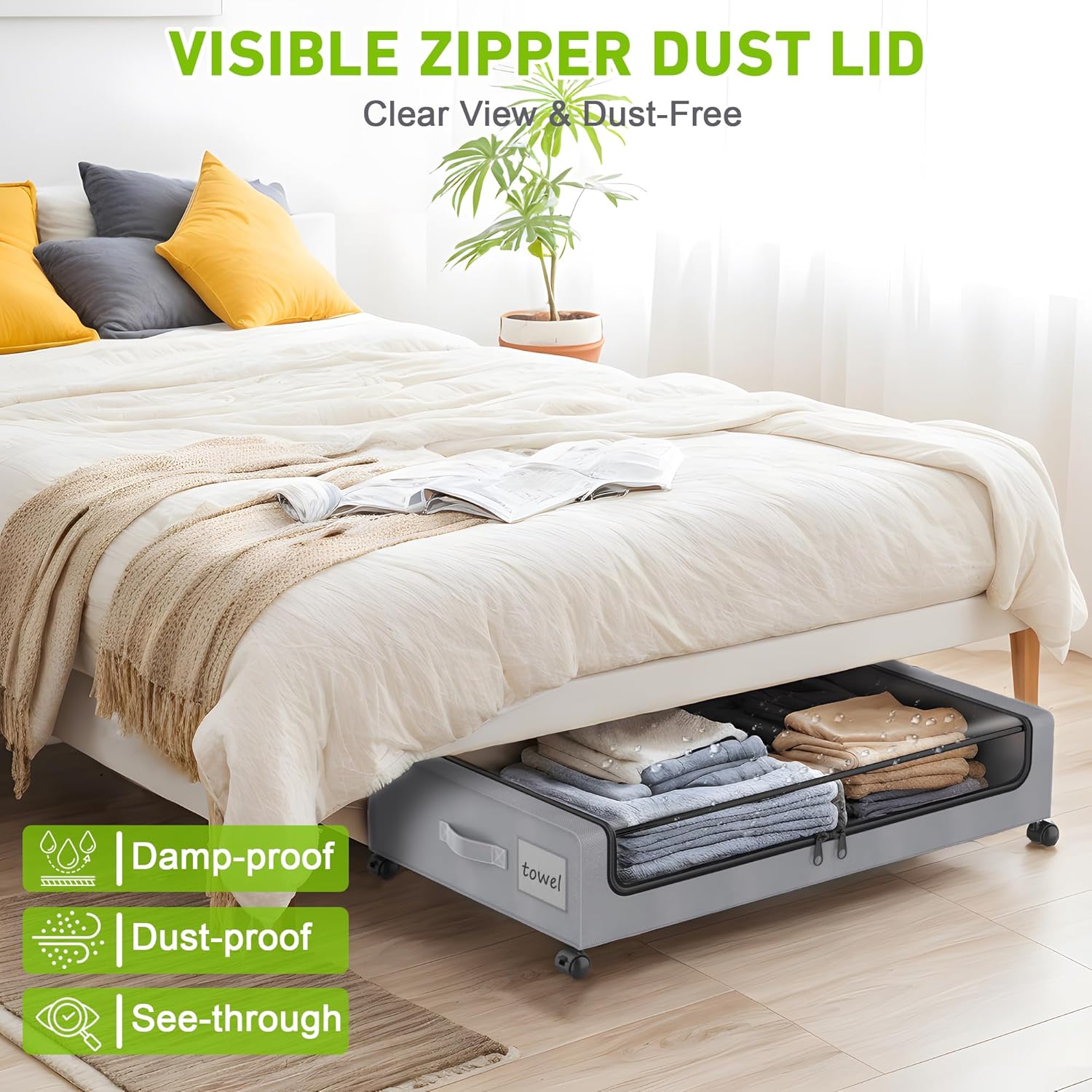 - 🏷️【Label & Clear Lid Design】The under-bed storage bins with transparent LIDS and labels make it easy to quickly identify your locker contents without having to open the bin, preventing misplacement and eliminating the hassle of searching for items. The under the bed storage box adopts double zipper design and high-quality material to thoroughly keep out moisture, oil stains, dust and dirty things, ensuring that your items are clean and no longer messy.