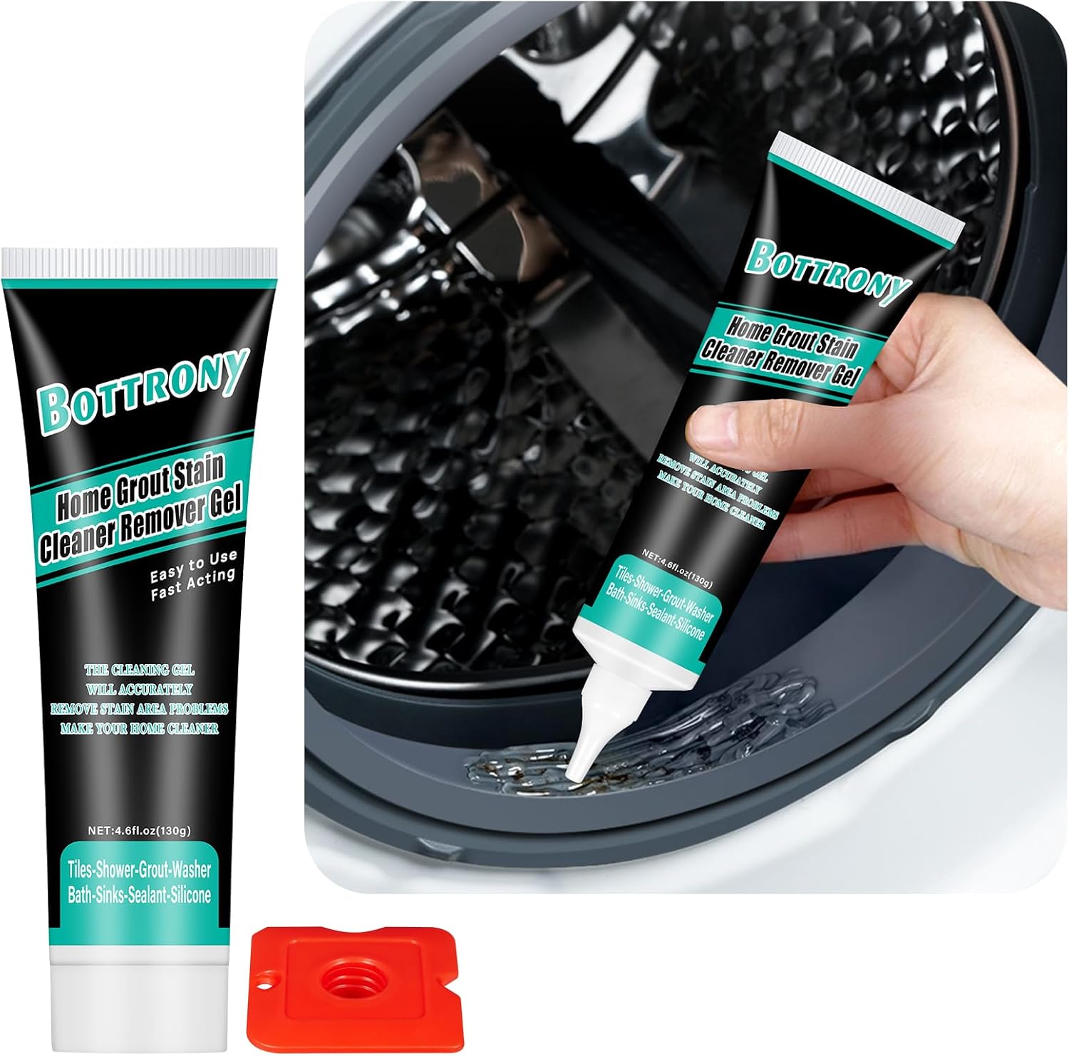 • WIDELY USED: Bottrony home stain cleaner remover gel can be used in refrigerators, front loading washing machine silicone sealants, kitchen sinks, showers, bathroom sinks, tile grout,silicone sealants,sinks,washbasins,and toilet bowls,bathtubs,verandas,ceramic tiles,window frames,and more.This household cleaning gel will fulfill many of your cleaning needs