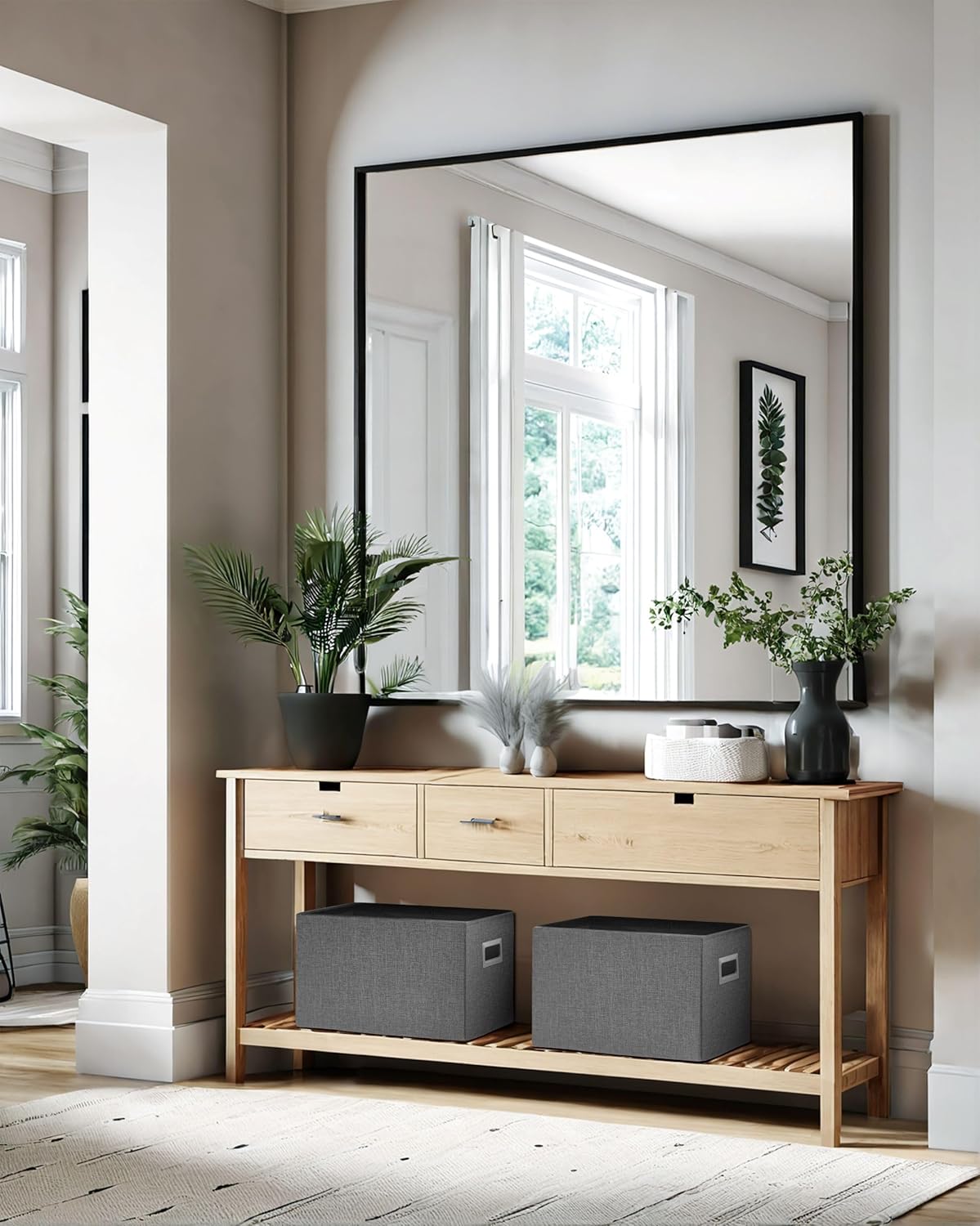 • Elegant Design: Crafted with a beautiful faux linen exterior and sleek cut-out handles for a clean, modern look. Stylish and practical large storage baskets for any home décor.