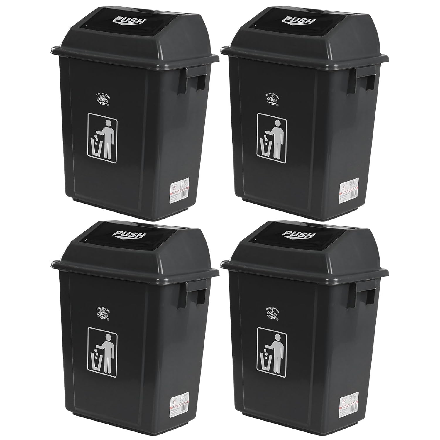 • Set of 4 gray trash cans suitable for kitchen use