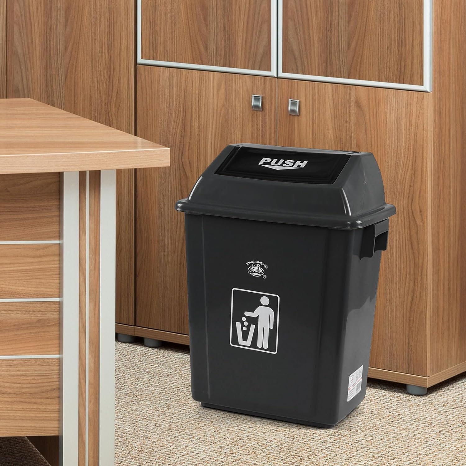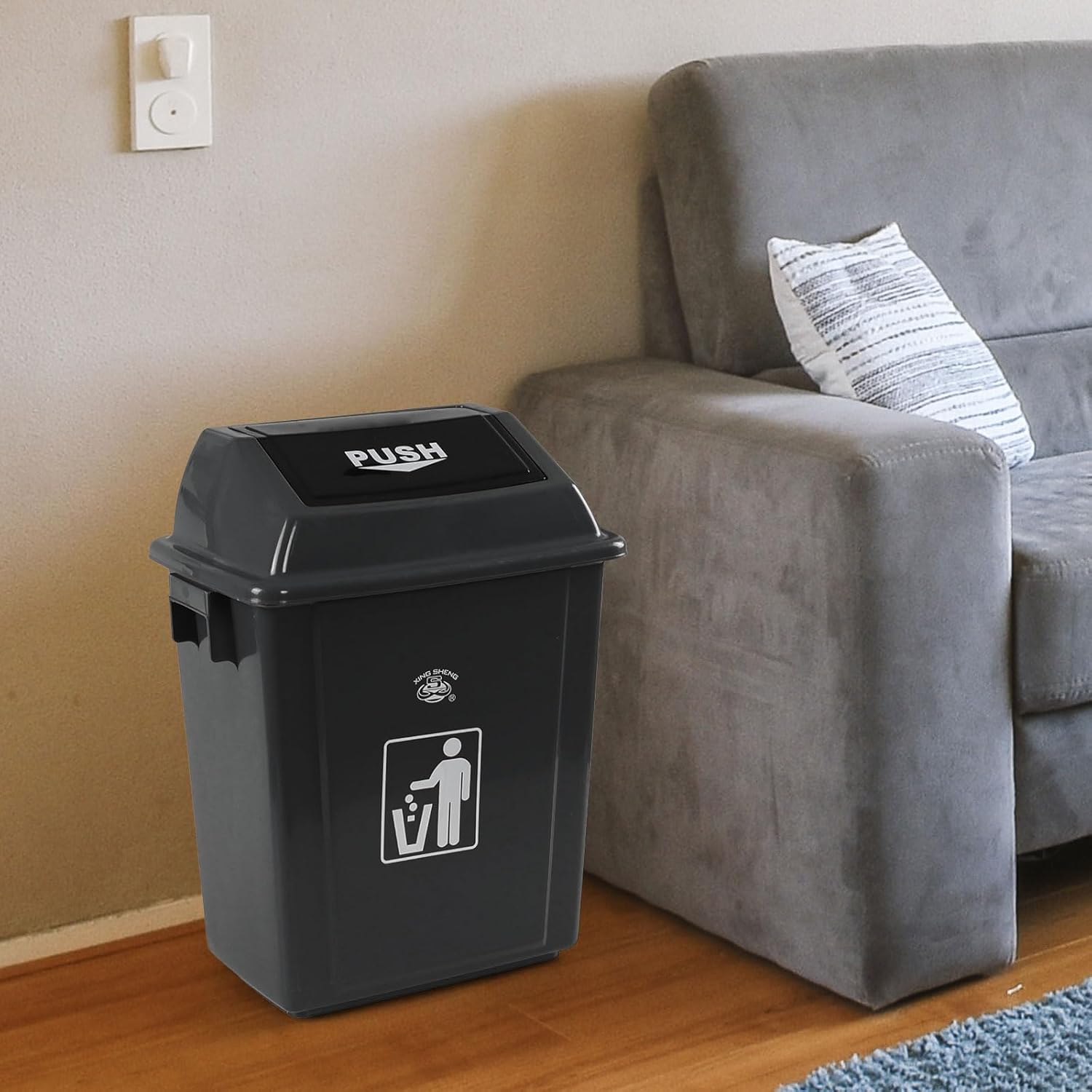 • Our trash can is equipped with swing lid that can be gently turn off after throwing garbage away, reducing the spread of garbage odors and germs