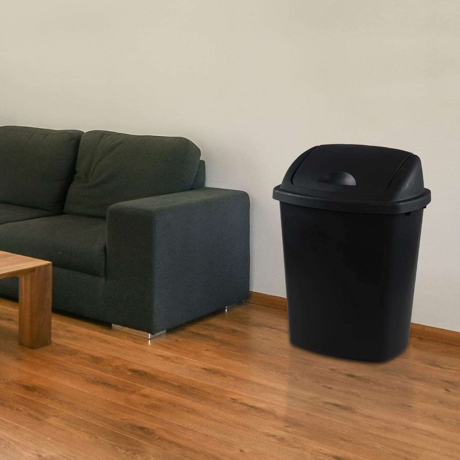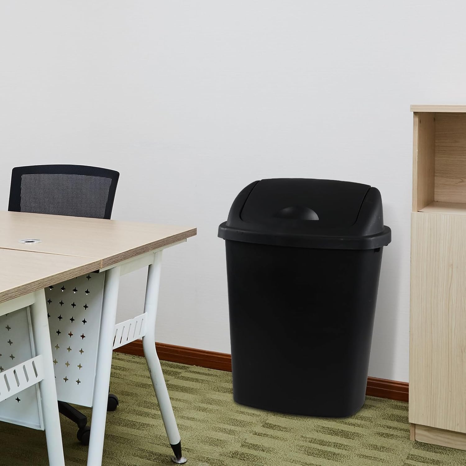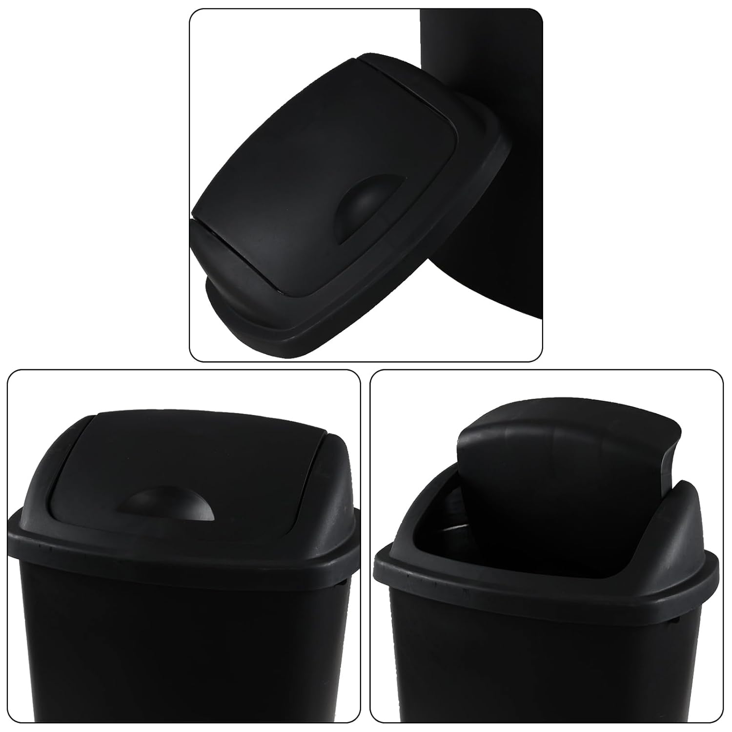4 Pack Swing Top Trash Can, 6 Gallon Plastic Garbage Bins with Swing Lid, Black