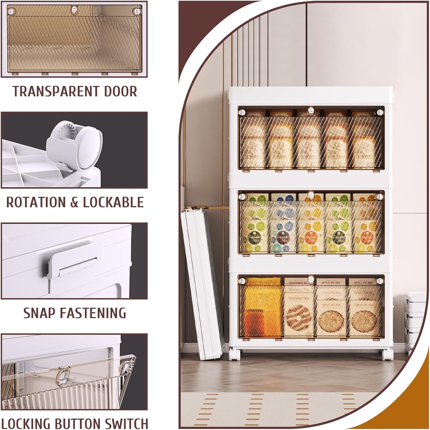 - Flexible and Convenient Design: The double-opening transparent door can be entered from the front and back, which is convenient for viewing and taking items, and is suitable for any space. The cabinet can be folded and has wheels for convenient storage and transportation, which enhances practicality.