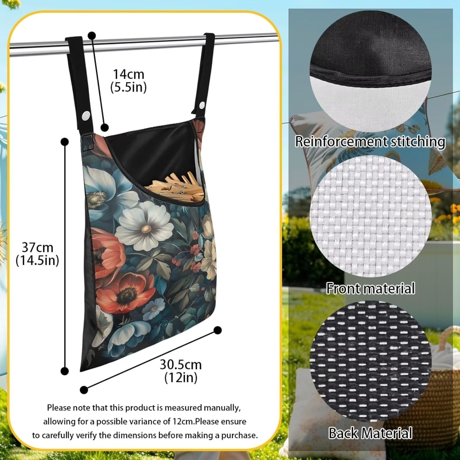 Art Flowers Clothes Pin Bags Clothespin Bag Holder Clothespin Holder 14.5 x 12 Inch Clothespin Bag for Clothesline Outdoor Outside Laundry Room Lightweight Clothespin Bag for Easy Hang, CZB94