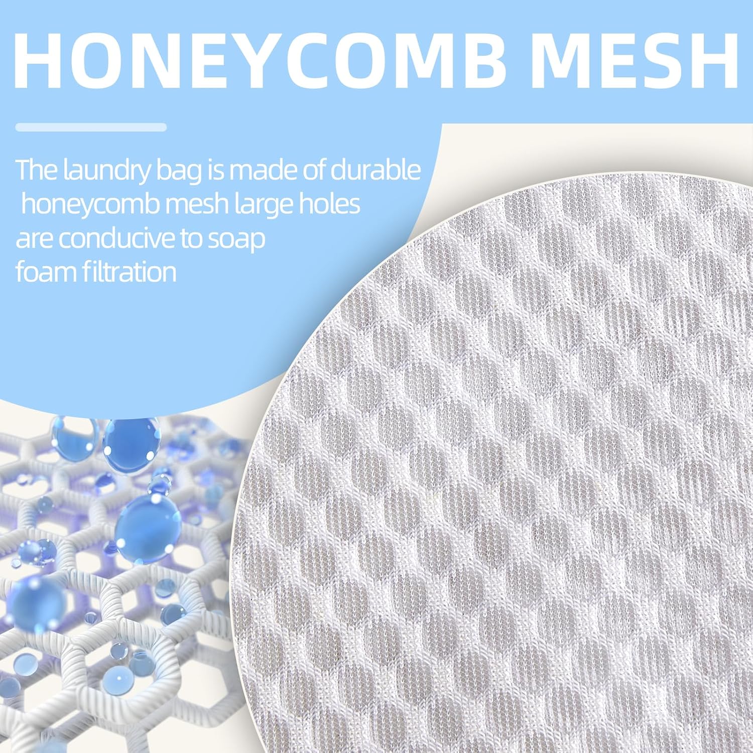 • Materials: The laundry bag is made of durable polypropylene (125g honeycomb net), no deformation, each material and production are carefully selected and made by us, different from other 90g silk fabric more thick and durable, large honeycomb holes are conducive to soap foam filtration, specially for washing consideration