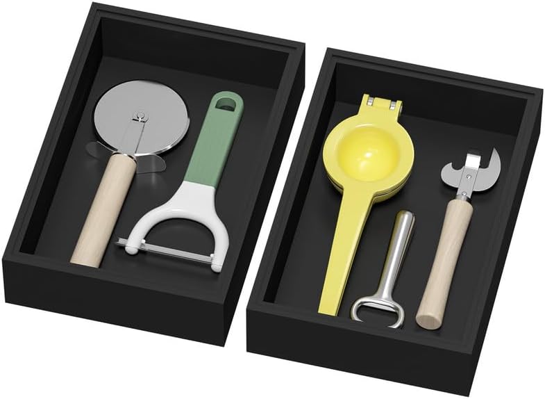 - Premium Bamboo Kitchen Drawer Organizer: Both 2 kitchen utensil organizer is made of sleek durable natural bamboo that is known to be stronger and beautiful than regular wood and to ensure durability and stability. Must have kitchen drawer organizer to organize silverware, utensil, cutlery and flatware like spoon. Or used on kitchen countertop to storage spice jars, sauces, bottles, etc.
