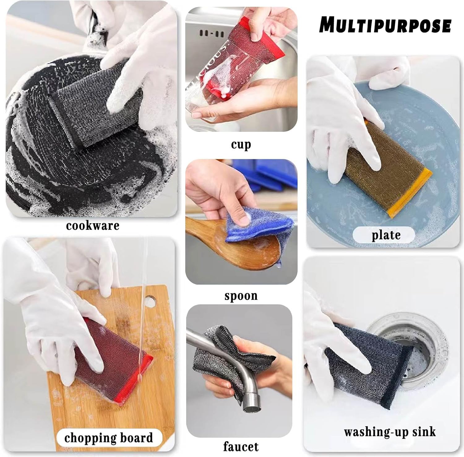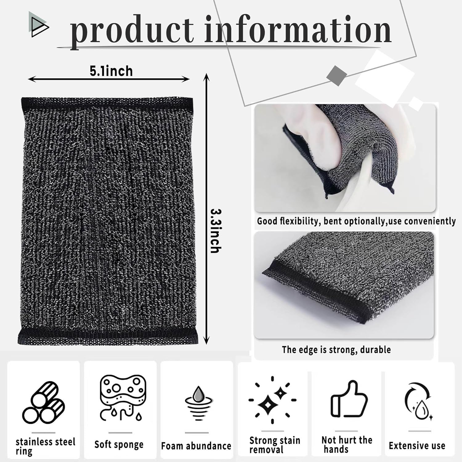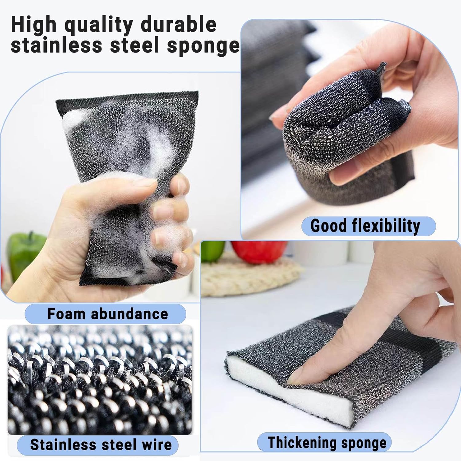 • Steel wool scrubber: Our kitchen scrubbers sponges are made of high-quality stainless steel wire and thick sponges, which enriches the foam and provides a powerful scrub, it does not leave a scratch on the surface.