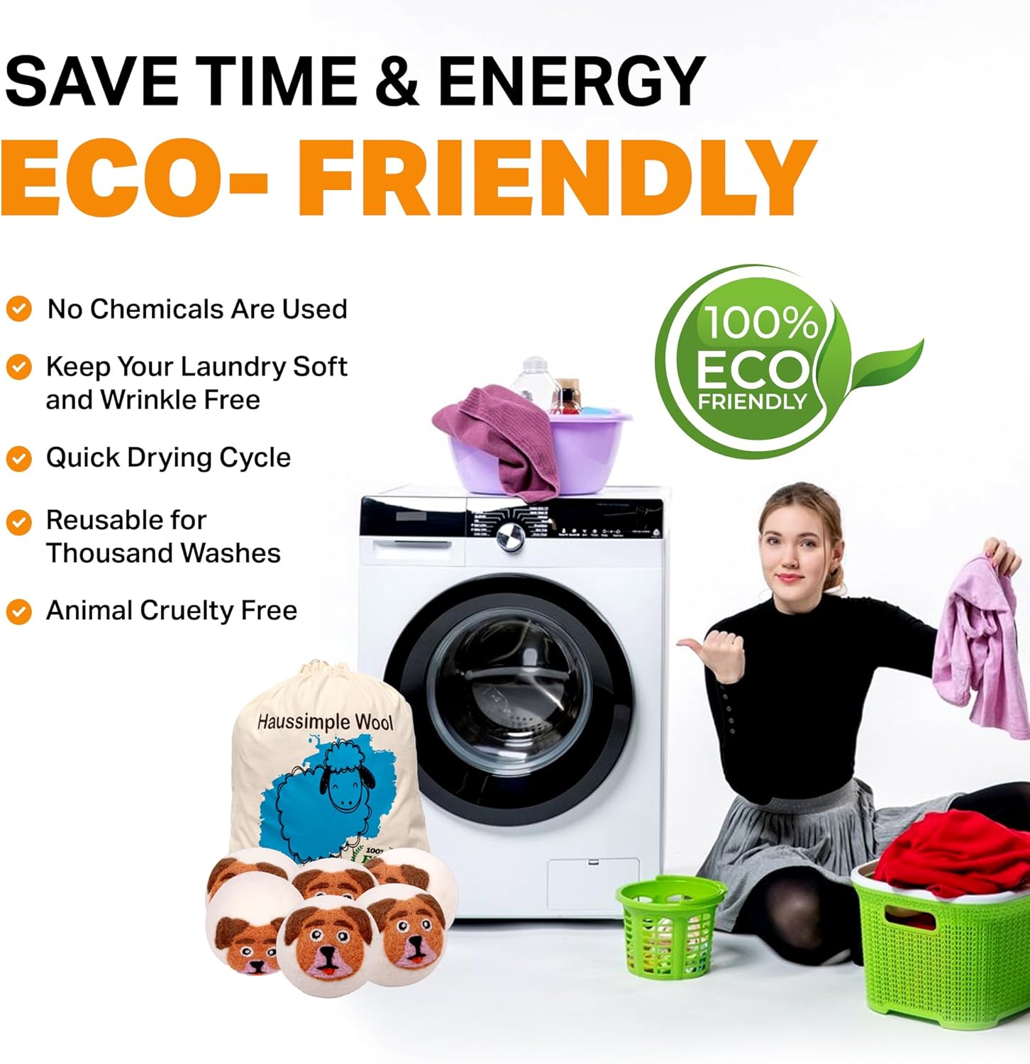 • Eco-Friendly and Reusable: Wool dryer balls are reusable, lasting for hundreds of loads. Unlike single-use dryer sheets, they generate less waste and are a more sustainable choice.