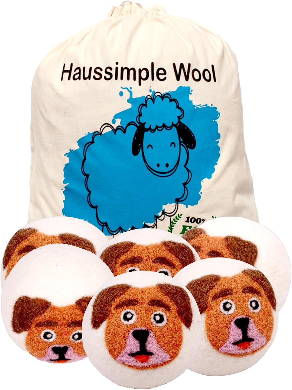 Wool Dryer Balls Organic Felt 6 Pack Laundry Fabric Softener, Extra Large Reusable Handmade Natural Sheep Wool Lint Wrinkle Free Anti Static Baby Safe (Orange Dog)