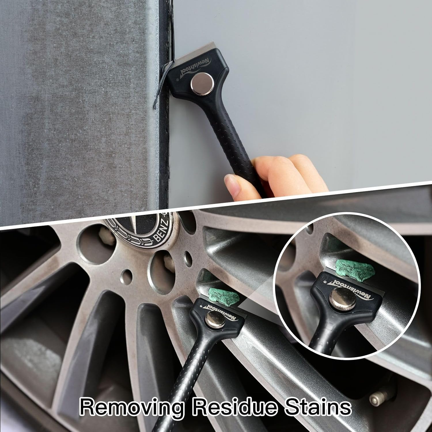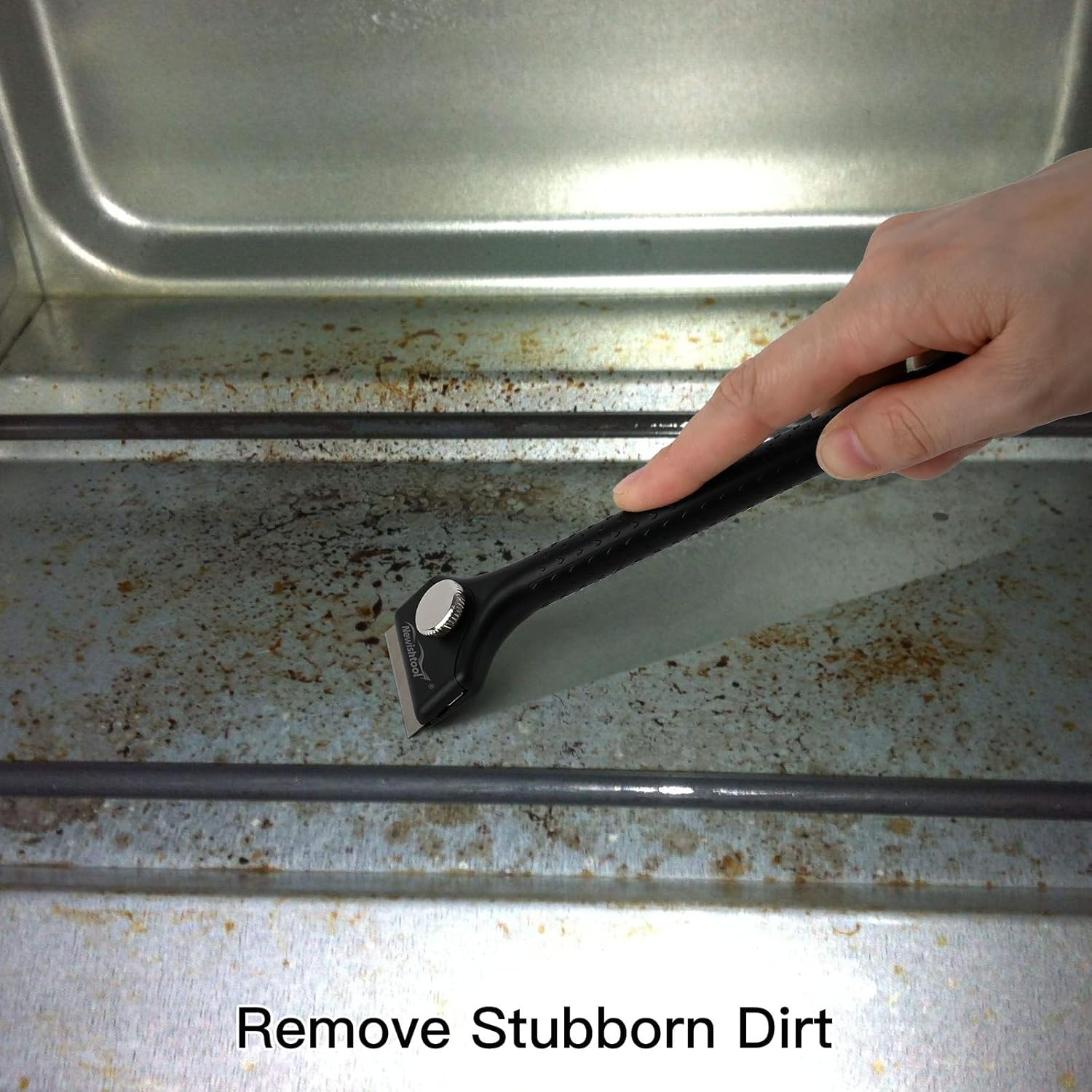 • Razor scraper tool is widely used in removing debris, glue, stickers, caulk, labels, decals from counter tops, stoves, appliances, metal, glass, etc. Keep one in the kitchen, bathrooms, workshop, toolbox, office, car, boat, RV, motorcycle.