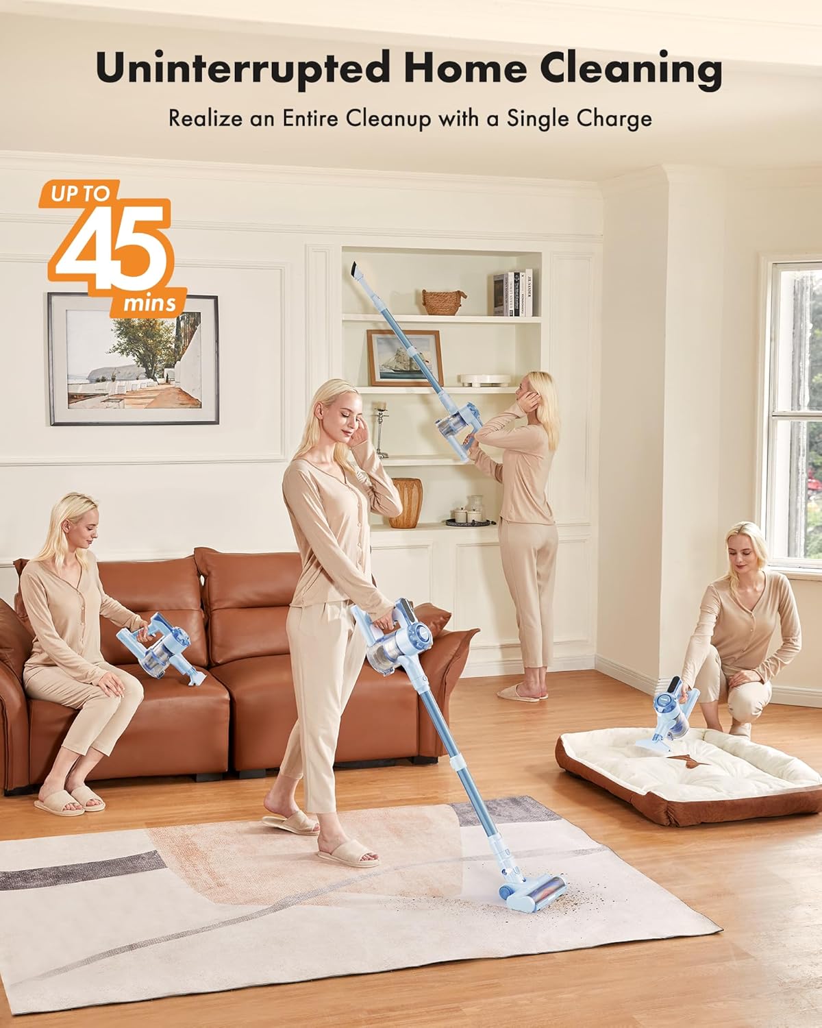 Trucozie Cordless Vacuum Cleaner, 8-in-1 Lightweight Stick Vacuum with 45mins Runtime, Powerful Suction, Rechargeable Cordless Vacuum for Carpet, Tile, Pet Hair, Hardwood Floors, Blue