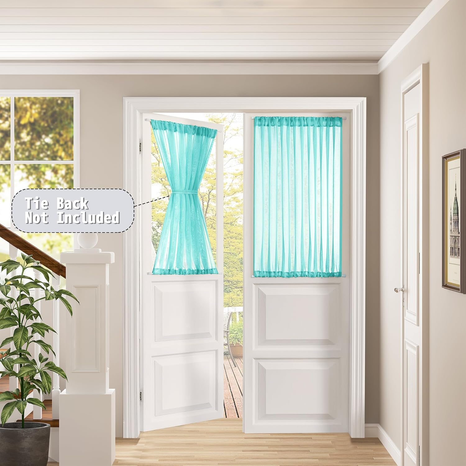 Tollpiz Short Sheer Door Curtain Closet Linen Textured Curtain Sheers Doorway Light Filtering Voile Patio Door Rod Pocket Curtains French Door, 54 x 54 inches Long, Aqua Blue, Set of 1 Panel