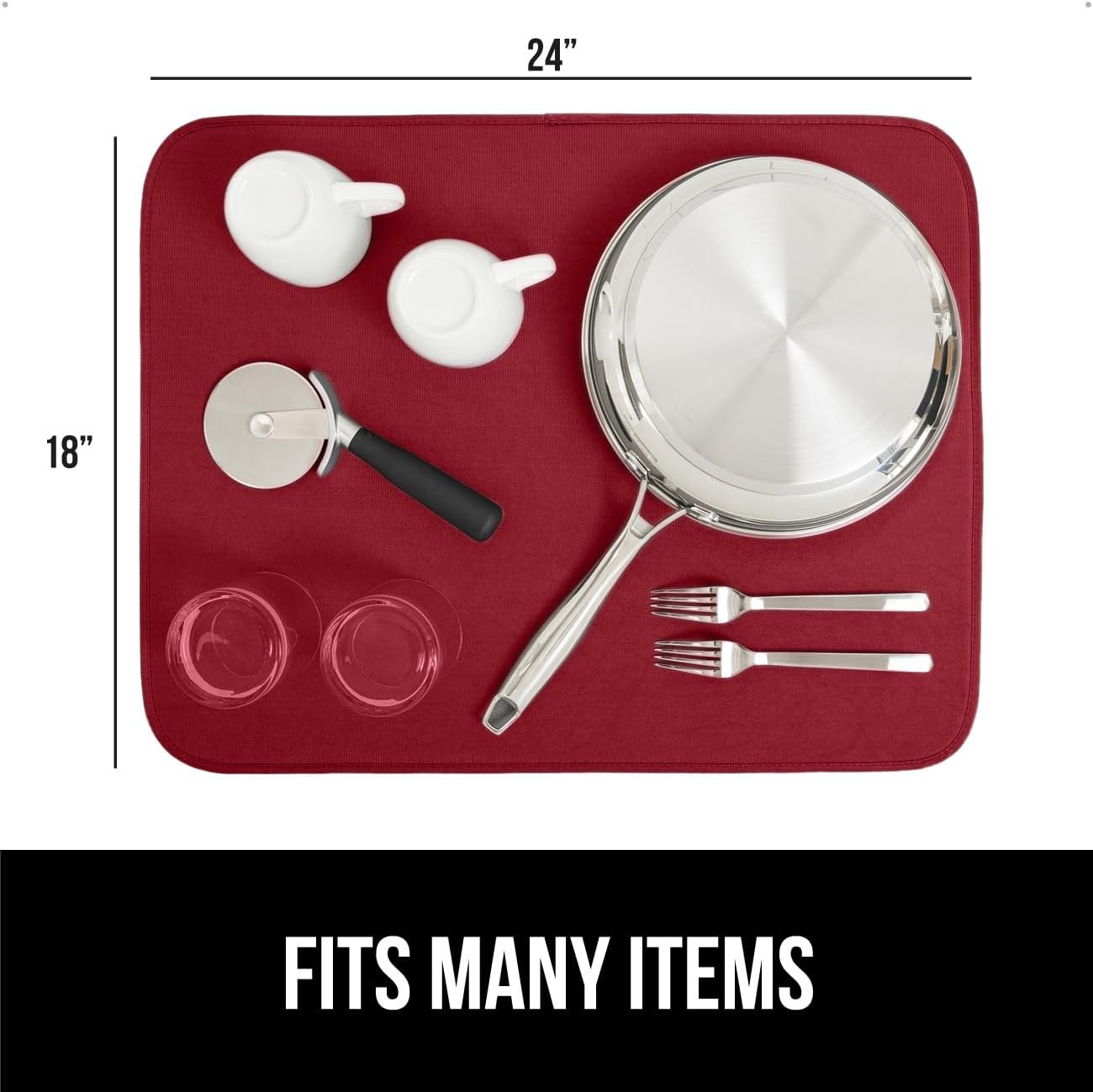 GORILLA GRIP Ultra Water Absorbent Microfiber Dish Drying Mat, 18x24, Quick Dry Thick Mesh, Slip Resistant Pad for Sink Dishes or Under Rack, Kitchen Counter Accessories, Machine Wash Mats, Red