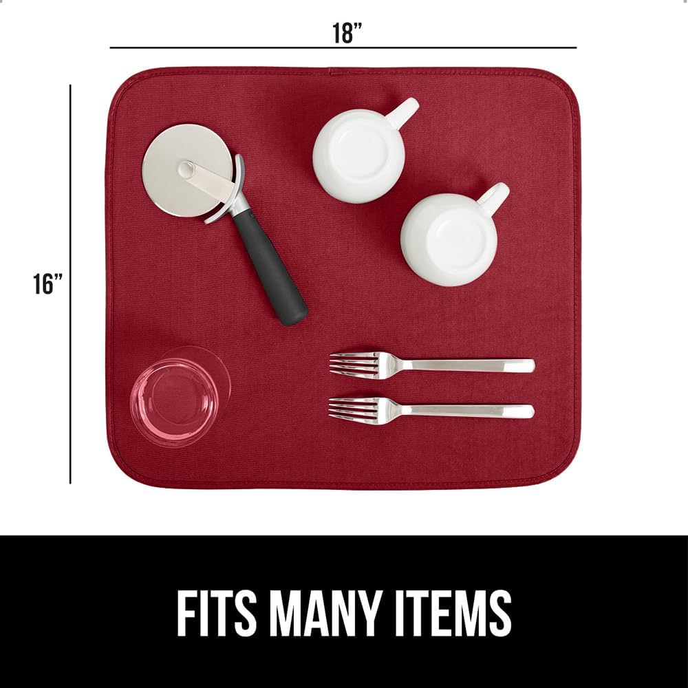 GORILLA GRIP Ultra Water Absorbent Microfiber Dish Drying Mat, Quick Dry Thick Mesh, Slip Resistant Pad for Sink Dishes or Under Rack, Kitchen Counter Accessories, 16x18, Machine Wash Mats, Red