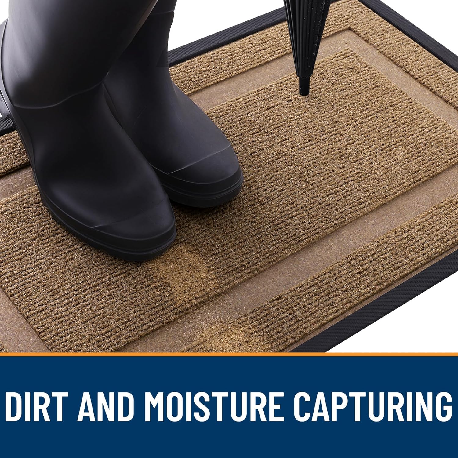 OLANLY Front Door Mat Indoor Outdoor Entrance, Waterproof All-Season, All-Weather Doormat, Sturdy Natural Rubber, Fade Resistant, Low Profile, Easy Clean Patio Porch Entryway Mat, 71x47, Light Brown