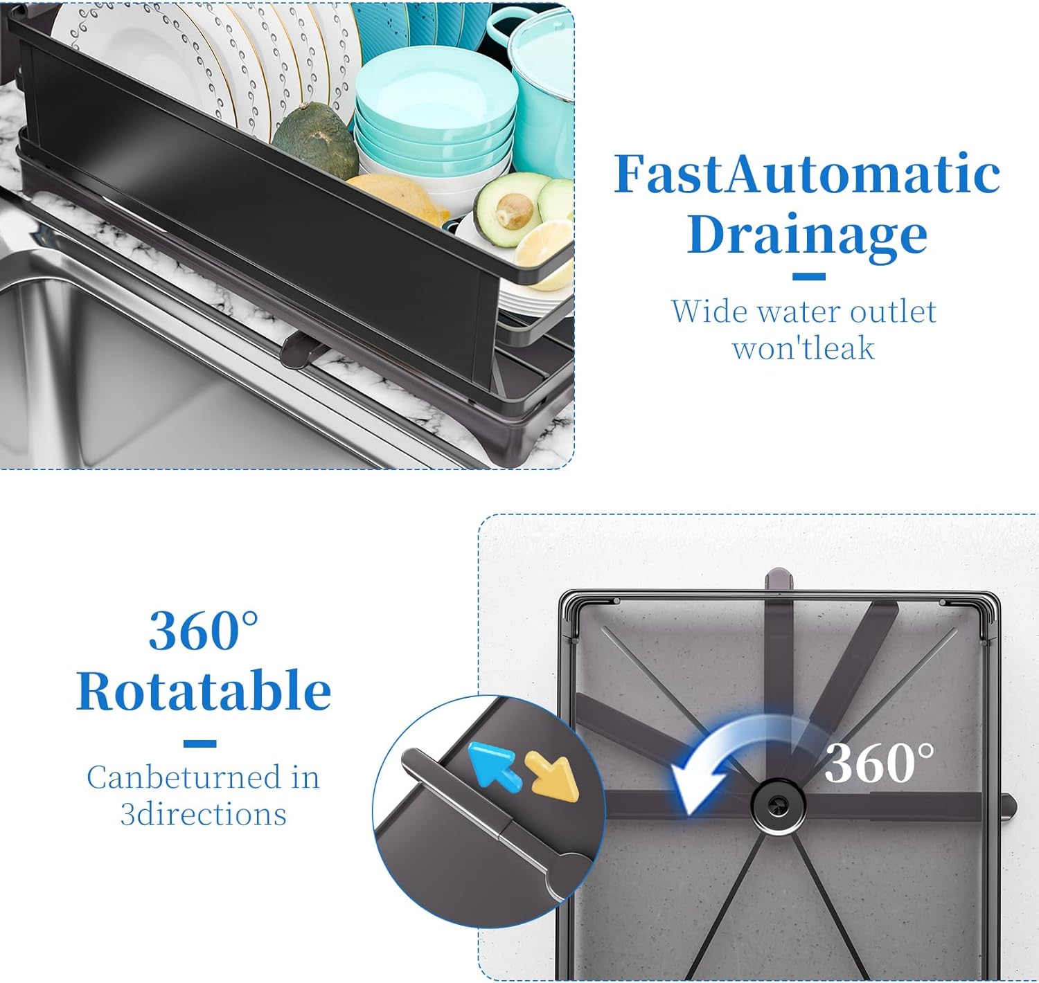 • Upgraded Drainage Tray: Using a taller and longer drain design, supporting 360° rotating drainage, allowing water to be channeled more cleanly and thoroughly, keeping the countertop dry and tidy.