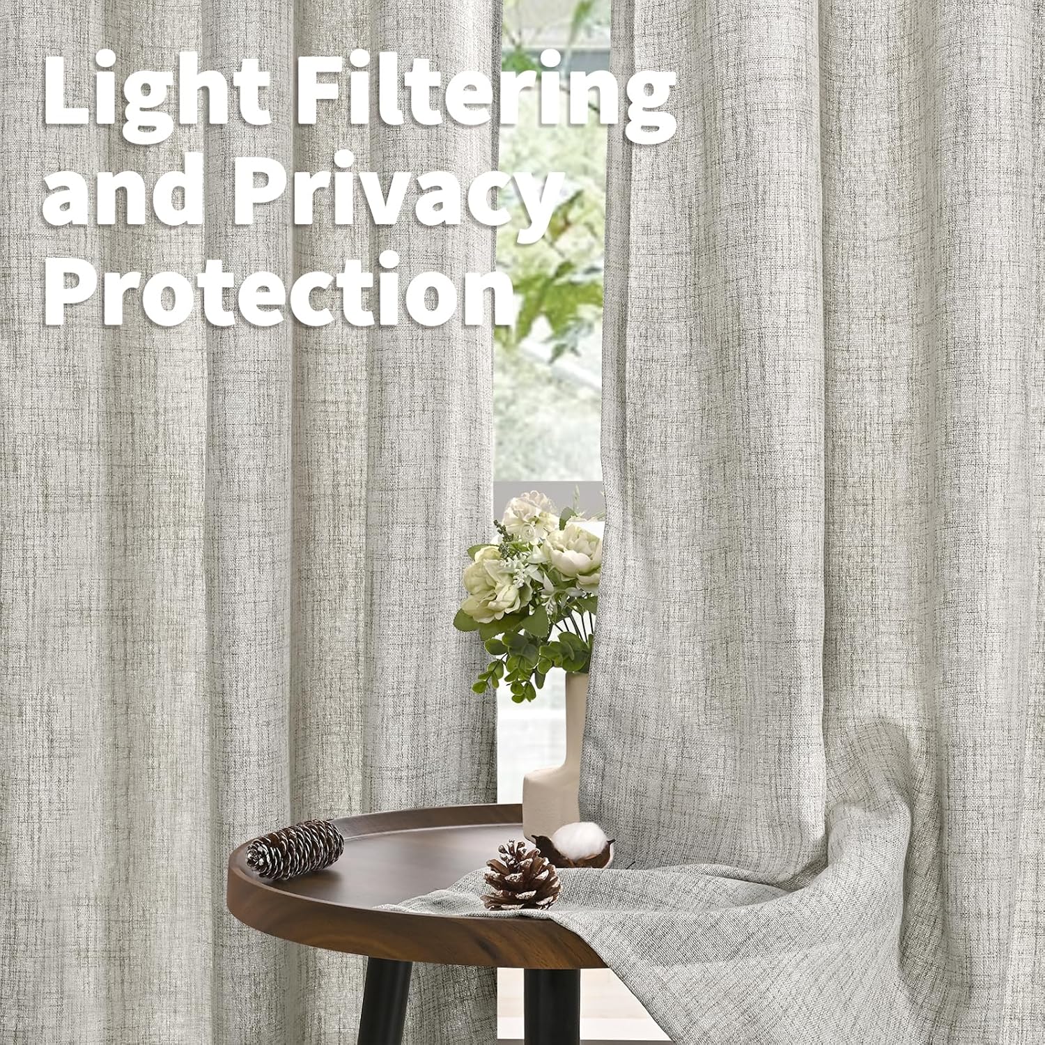 • Privacy Protection: Different from ordinary sheer drapes, our linen curtains are woven with a firmer and thicker texture that filters harsh light, while nice thickness helps provide privacy. Subtly balancing light and privacy that allow you to enjoy your leisure time.