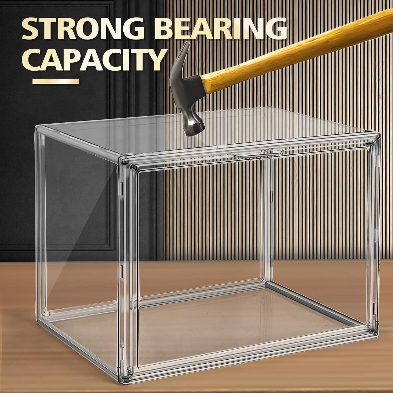 1Pack Clear Stackable Plastic Storage Bins with Magnetic Lid, X-Large Acrylic Display Cases for Book Cosmetic Figures Collectibles Showcase, Shoe Box, Bag Organizer
