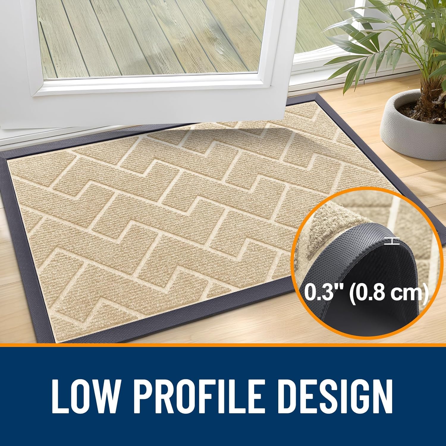 OLANLY Front Door Mat Indoor Outdoor Entrance, Waterproof All-Season, All-Weather Doormat, Sturdy Natural Rubber, Low Profile, Easy Clean Patio Porch Entryway Mat, Herringbone Brick (Beige, 71x47)