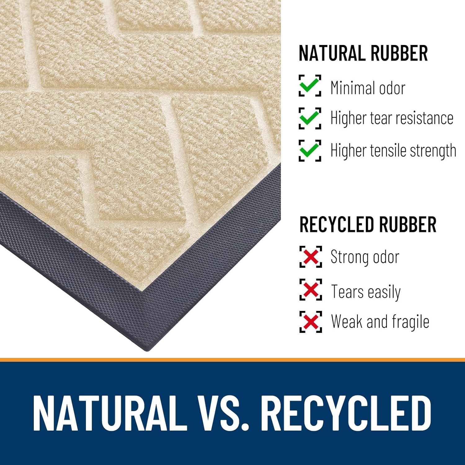 • [STURDY NATURAL RUBBER BACKING] The OLANLY heavy-duty door mat features an ultra-thin design, allowing it to effortlessly glide under most doors without jamming or curling. Crafted with a sturdy natural rubber backing, our product offers higher tensile strength, increased tear resistance, and less odor compared to synthetic rubber.