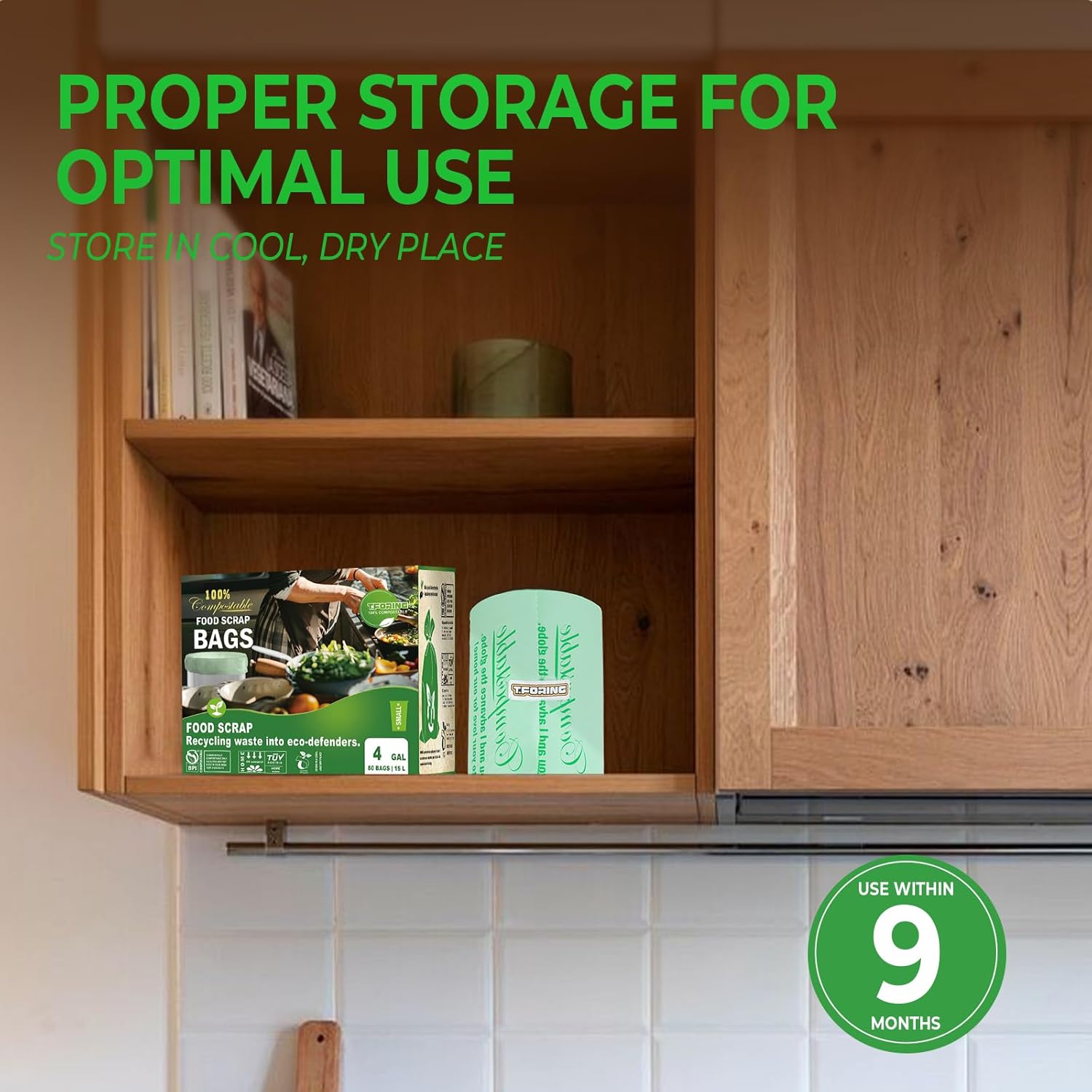 - 【Eco-friendly for Environment】T.FORING compostable bags are made from corn starch and plant-based materials,no polyethylene.Bags are durable, nontoxic, easy to use and great for the environment.T.FORING 4 gallon trash bags decomposes fully into CO2, water and organic biomass after 6-12 months, leaving no traces of plastic in the environment.