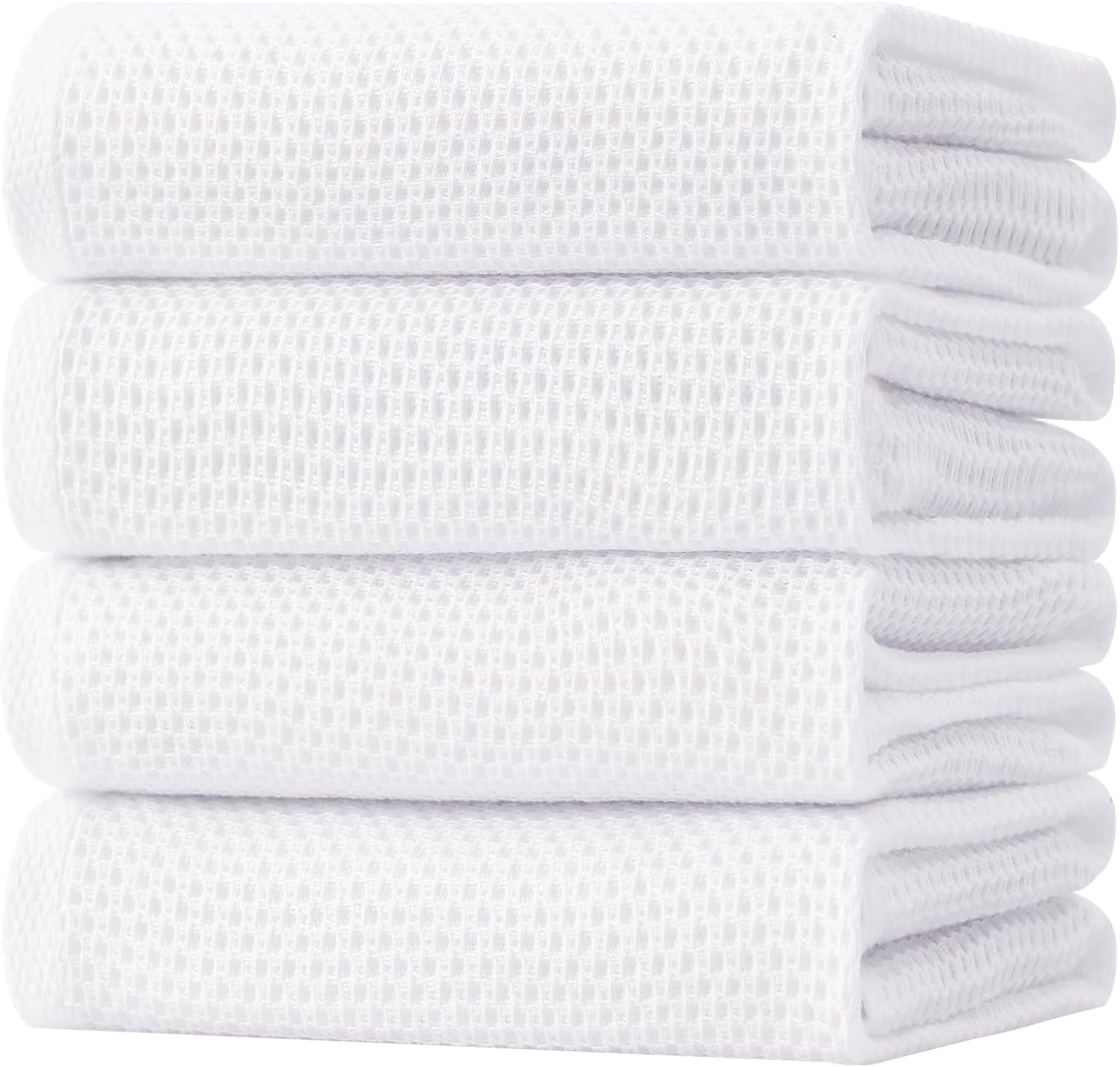 Homaxy 100% Cotton Oversized Waffle Weave Kitchen Dish Towels, Ultra Soft Absorbent Quick Drying Cleaning Towel, 20 x 28 Inches, 4-Pack, White