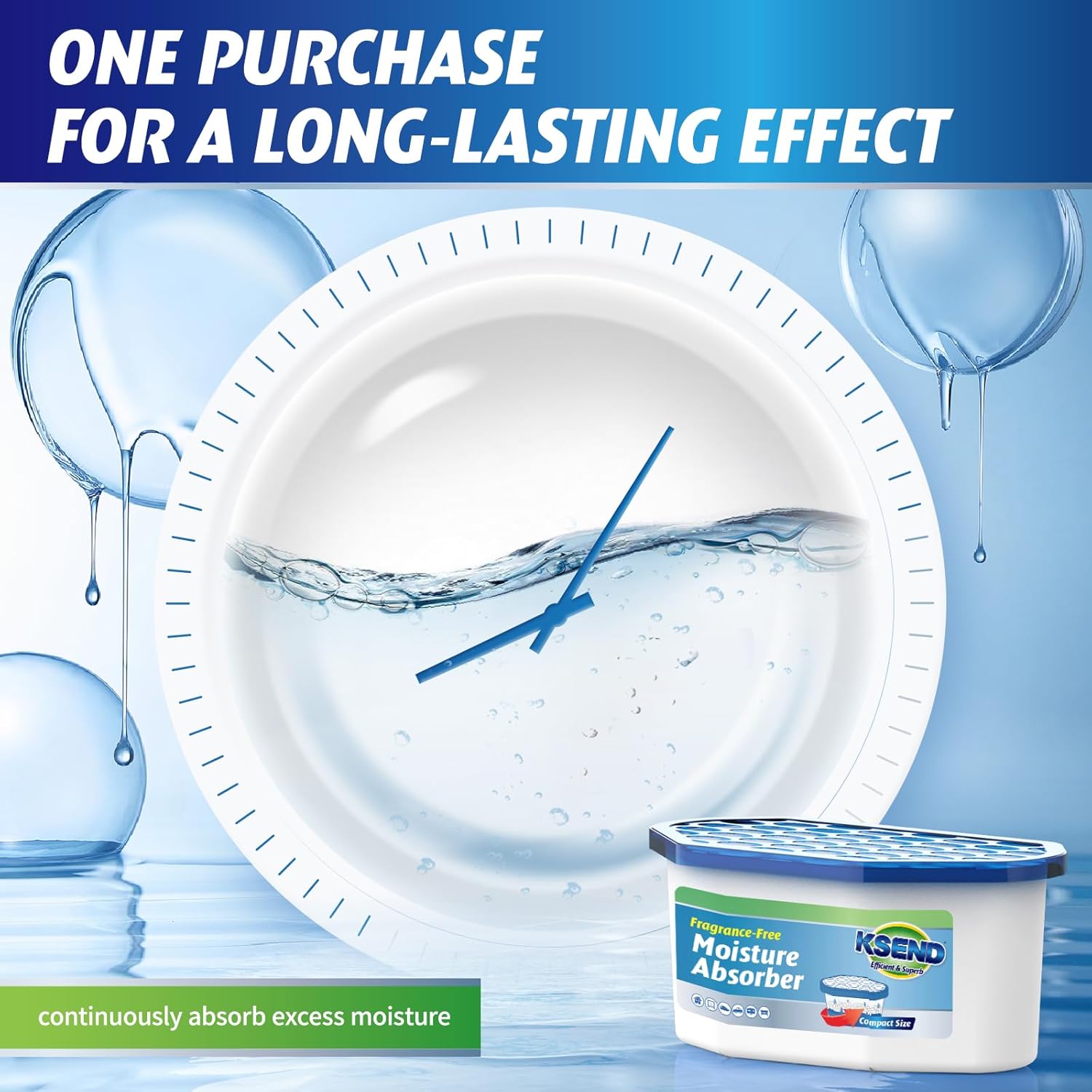 - LEAKPROOF DESIGN: Ksend moisture absorbers for rooms are equipped with a unique moisture-locking paper design. This innovative feature ensures that even if the boxes are accidentally overturned, the collected water will remain securely contained. You can confidently place them anywhere without worrying about water leakage.