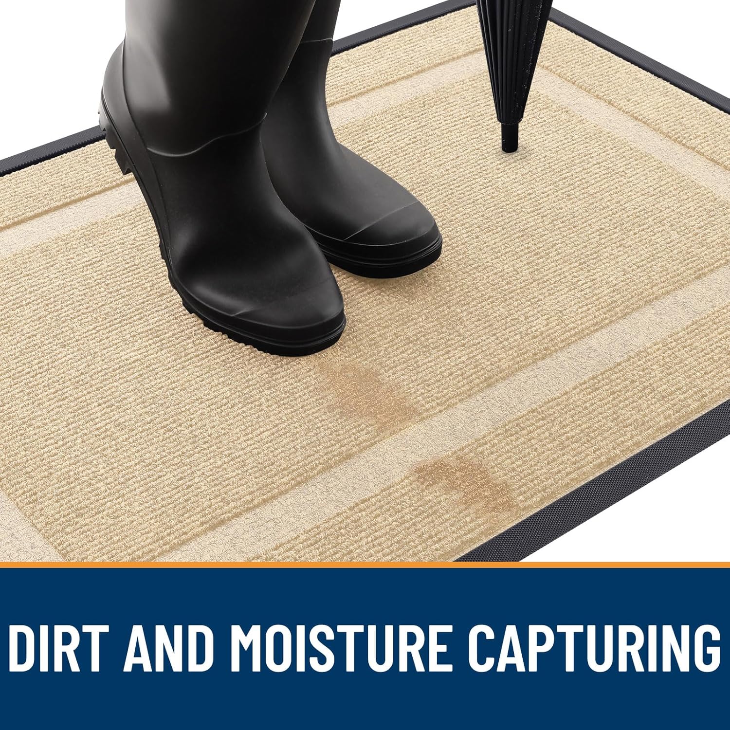 OLANLY Front Door Mat Indoor Outdoor Entrance, Waterproof All-Season, All-Weather Doormat, Sturdy Natural Rubber, Fade Resistant, Low Profile, Easy Clean Patio Porch Entryway Mat, 47x17, Beige