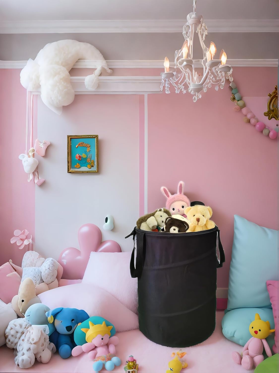 - This foldable camping trash can is the perfect choice for outdoor activities. Thick Oxford material with a lid design so you don't have to trap things falling out and other objects and animals getting in. The collapsible design makes it easy to store and carry, dirty clothes baskets, trash cans, storage bags, can be convenient outdoors, at home, fishing, collecting branches and leaves, etc.