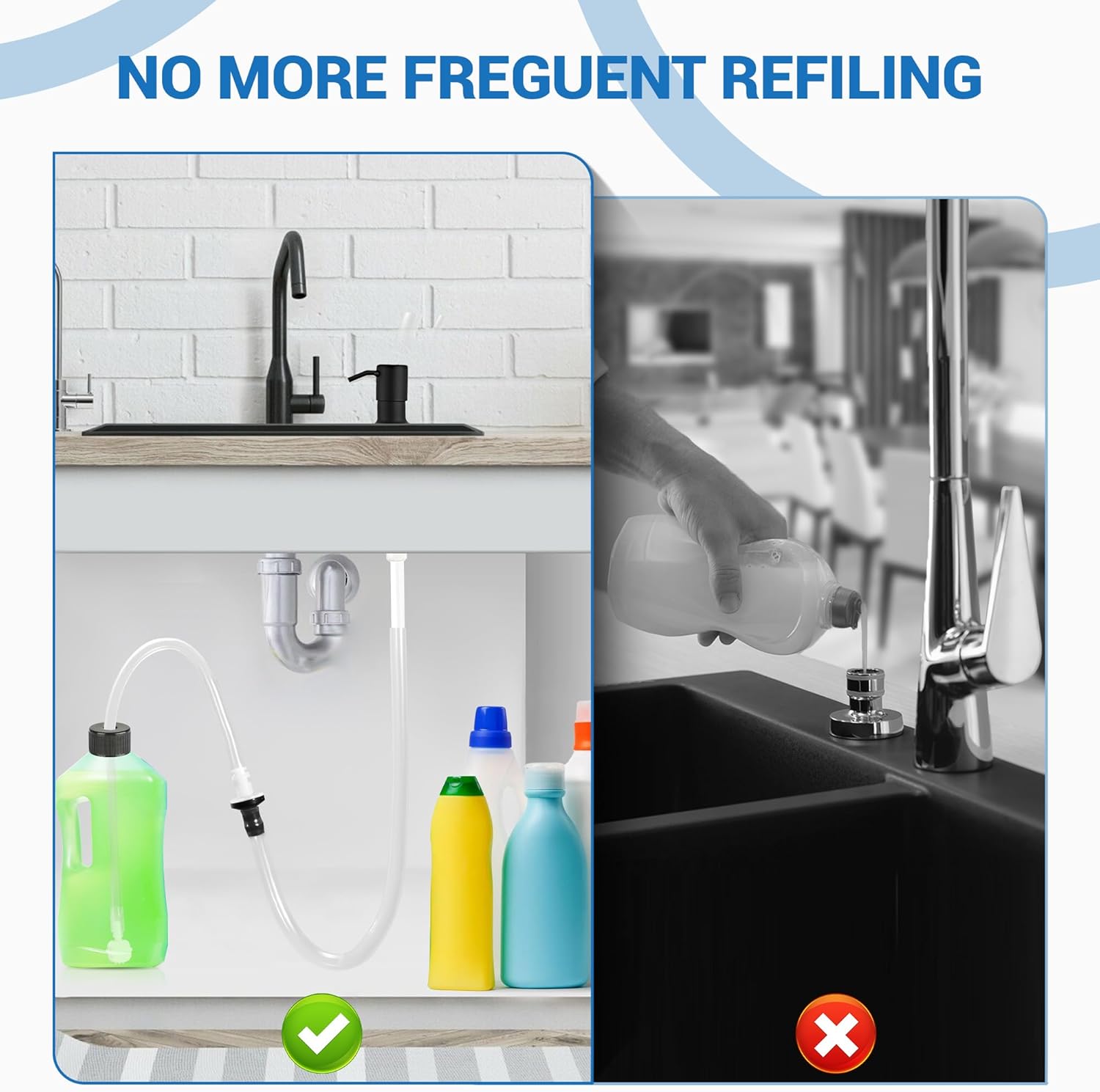 • SAY GOODBYE TO FREQUENT REFILLS: With the 47" kitchen sink soap dispenser extension tube kit, use the big bottle directly, no more refilling the tiny dish bottle.