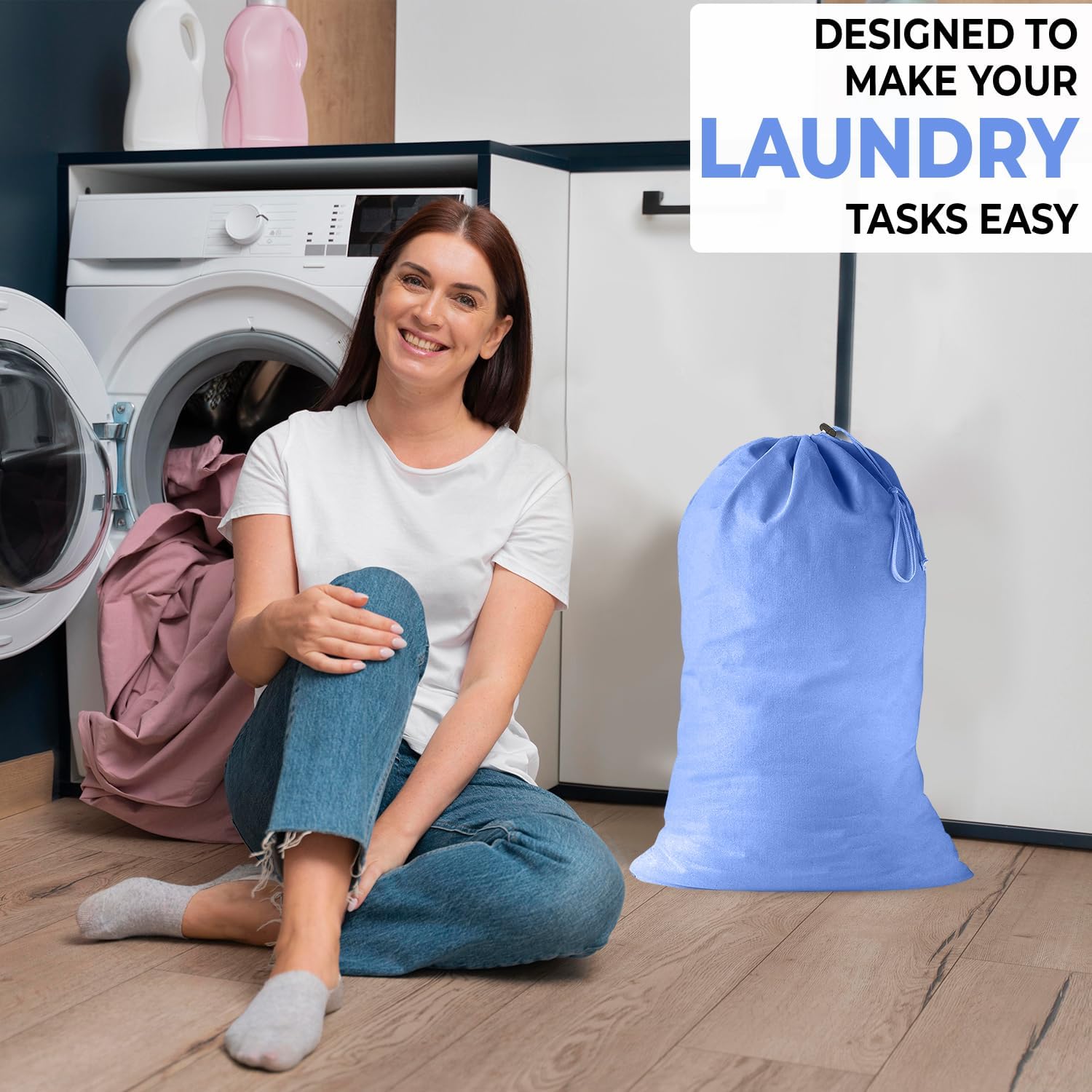 - DRAWSTRING CLOSURE - Heavy duty drawstring closure with spring lock, protect spilling of personal items. Especially when your washing machine is on different floor or buildings, this xl travel laundry bag protect articles from losing in route to washing machine.