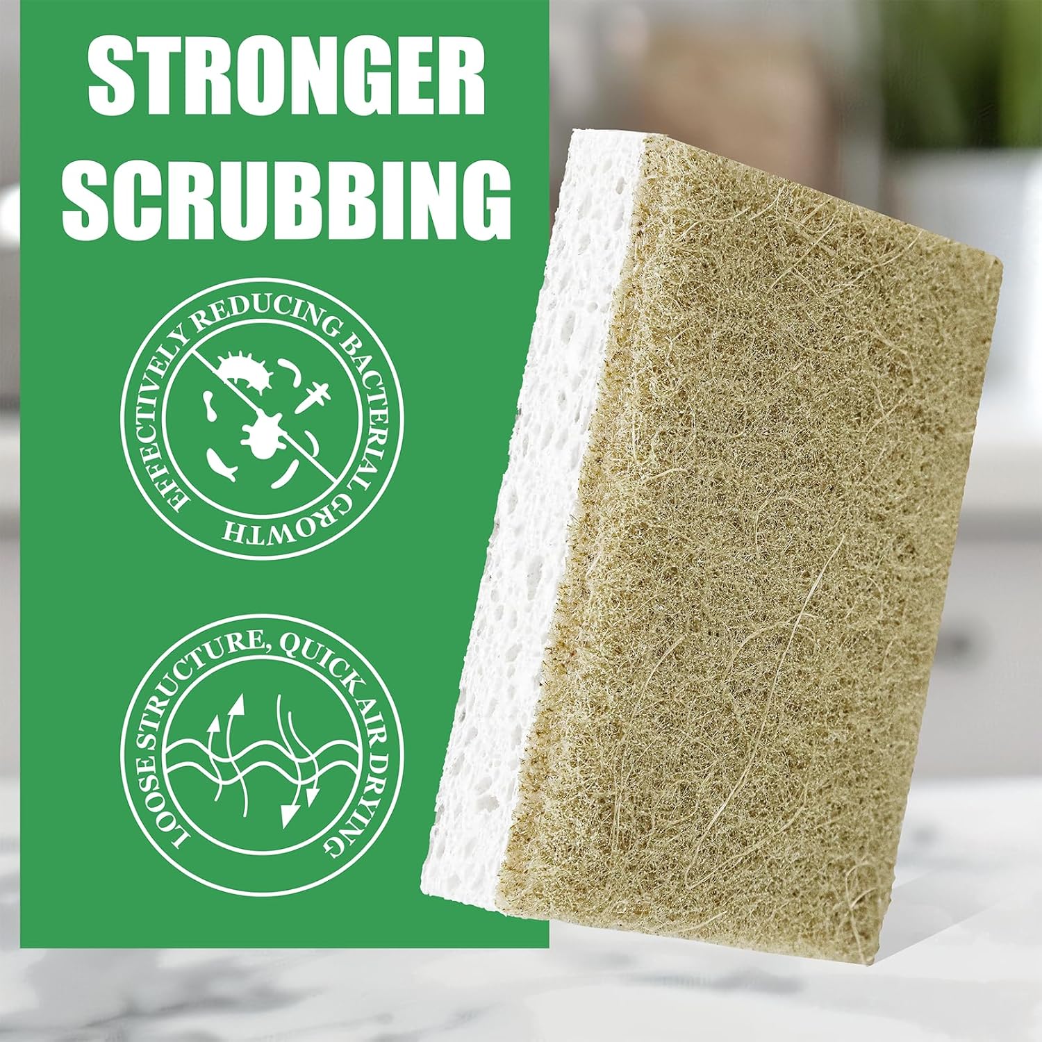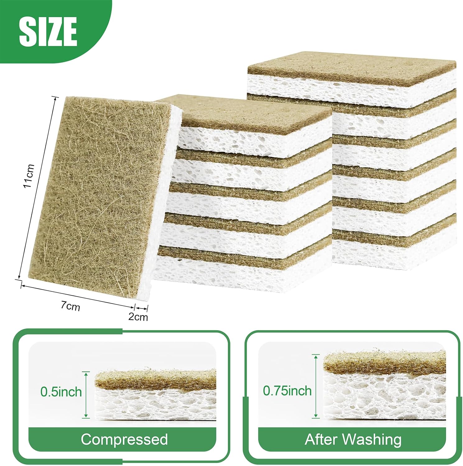 Natural Kitchen Sponges, 12 Pack Non-Scratch Sponge for Dishes, Biodegradable Scruber Sponges Kitchen for Cleaning, Household