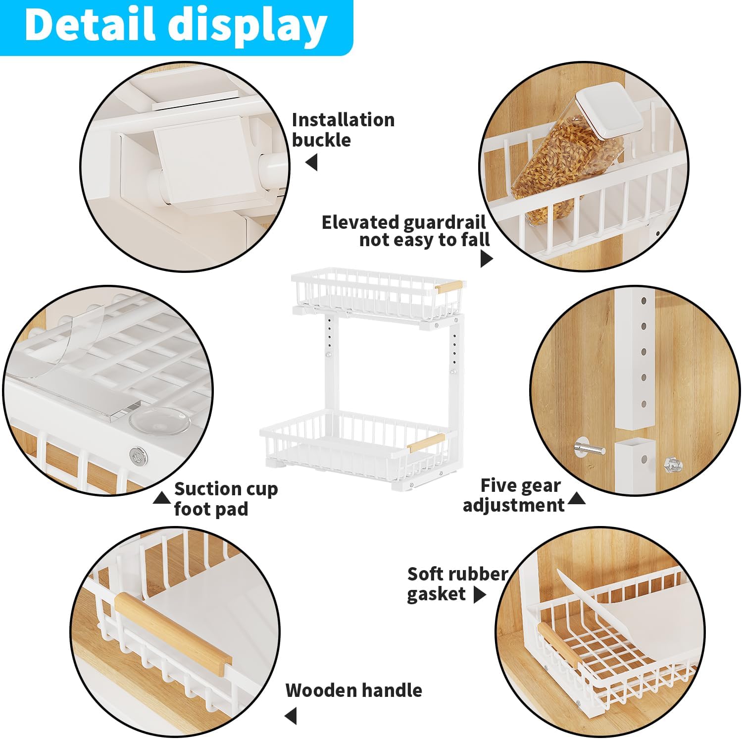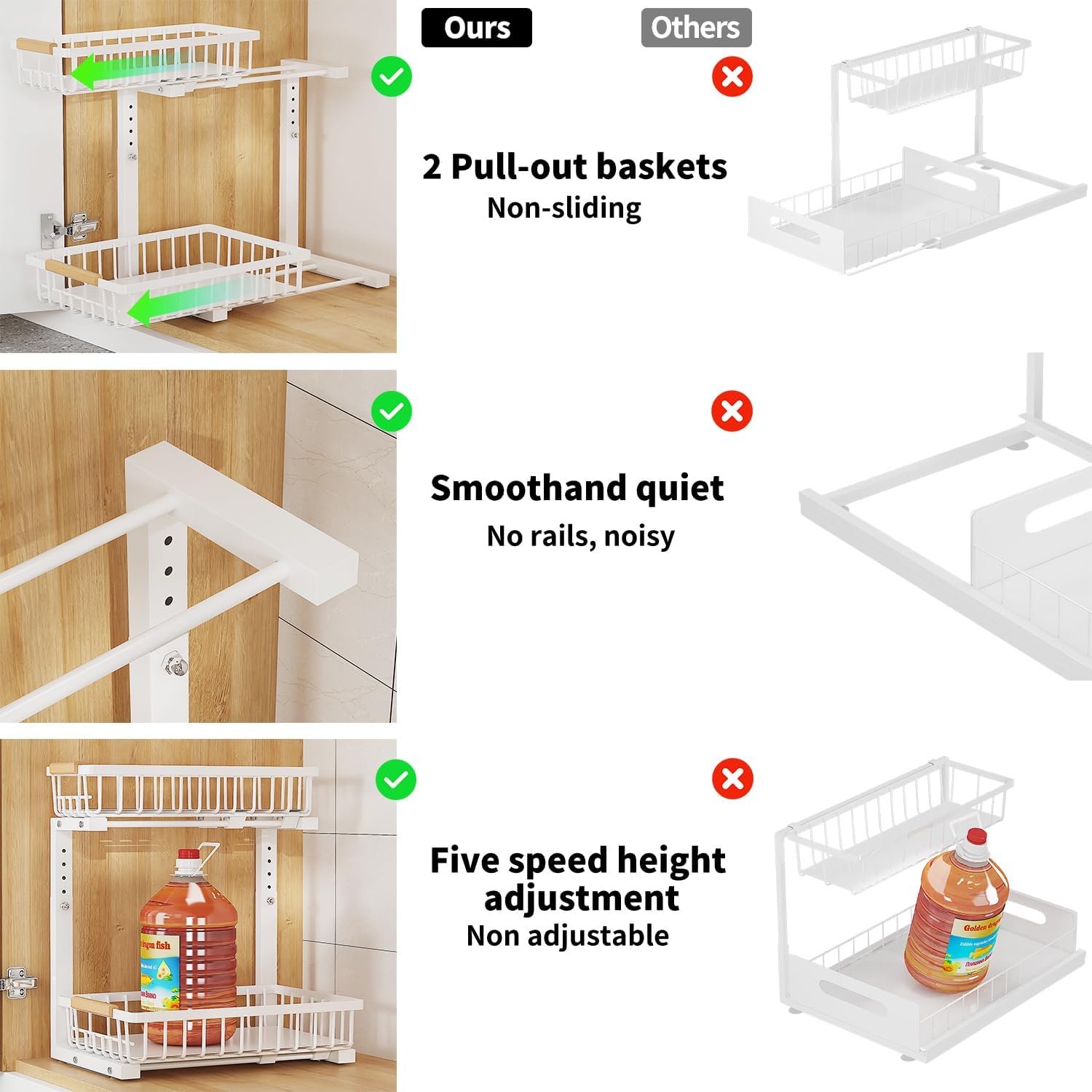 Under Sink Organizer, 2 Tier Slide Out Under Sink Organizers and Storage, Height Adjustable Pull out under cabinet storage, Metal Bathroom Kitchen Sink Organizer,2 Pack