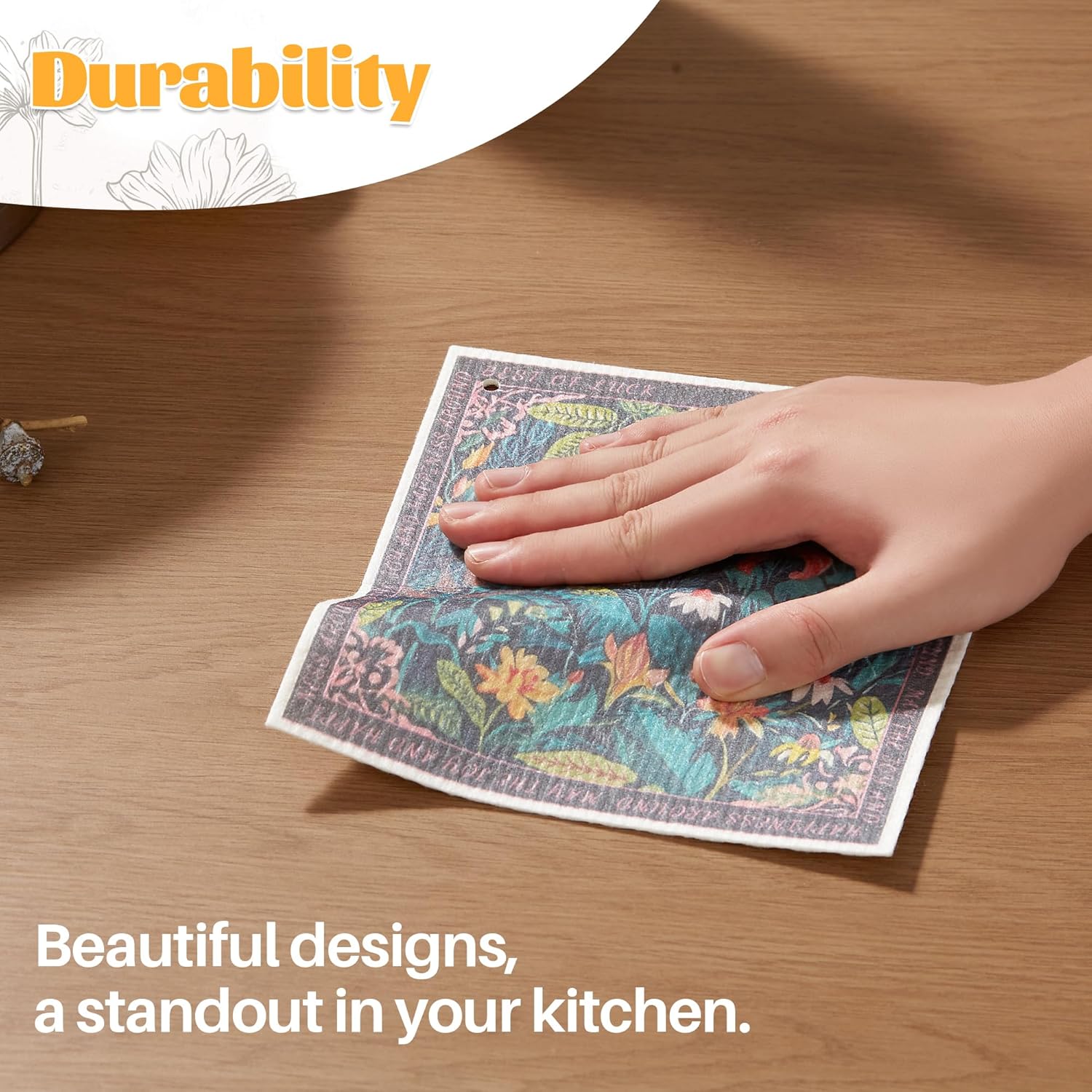 JOYMOOP 12 Pack Decorate Cleaning Cloth (Simple Floral of Decorative Series), Reusable Absorbent Dish Towels, Non-Scratch Washable Rags for Cookware, Kitchen and Household Cleaning - 6.7×7.9 inch