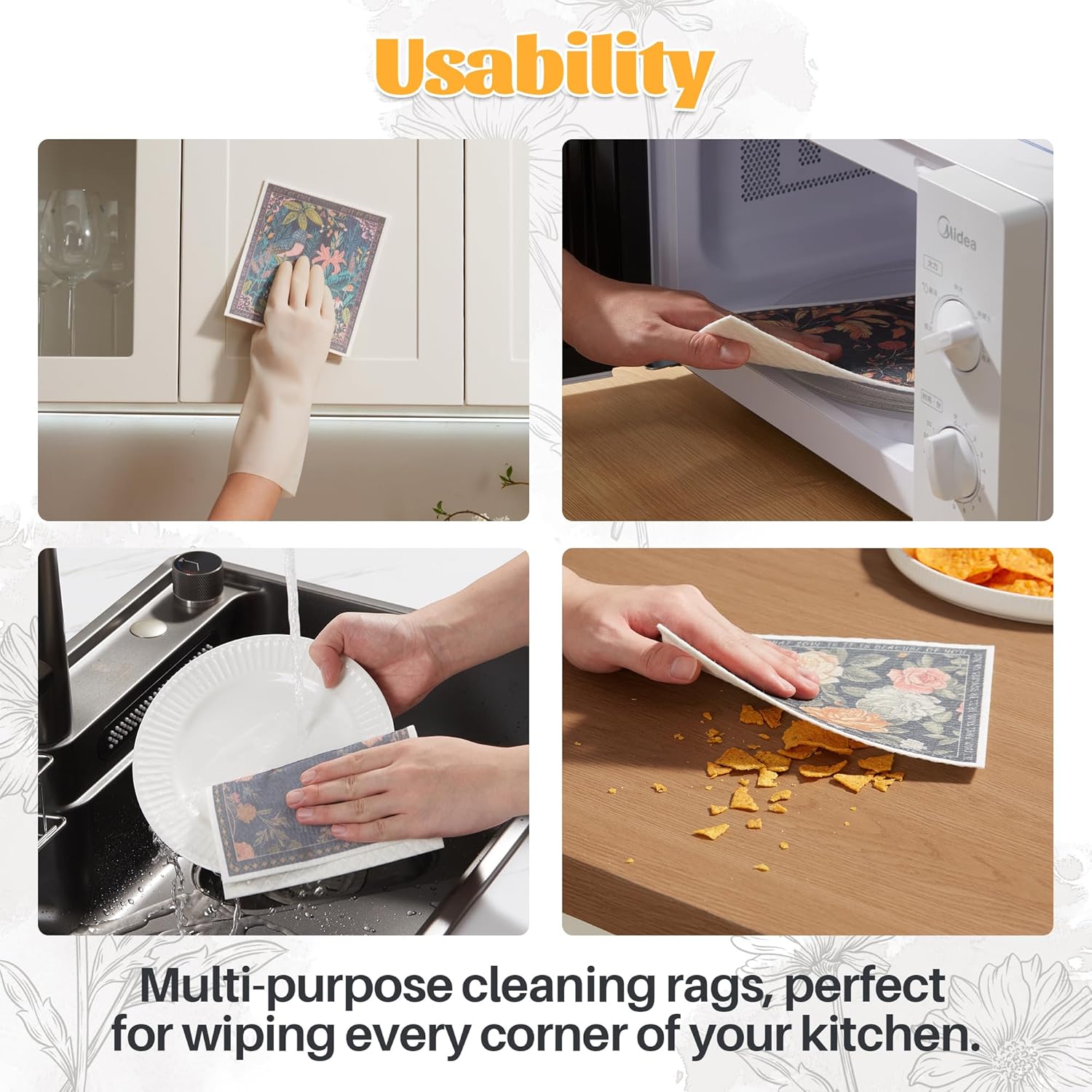 • [Nature & Reusable] The Cleaning Cloth are made of cellulose fiber, which help them keep good shape without deformation or falling apart even after long-time uses. Perfect choice for durable and sturdy use!