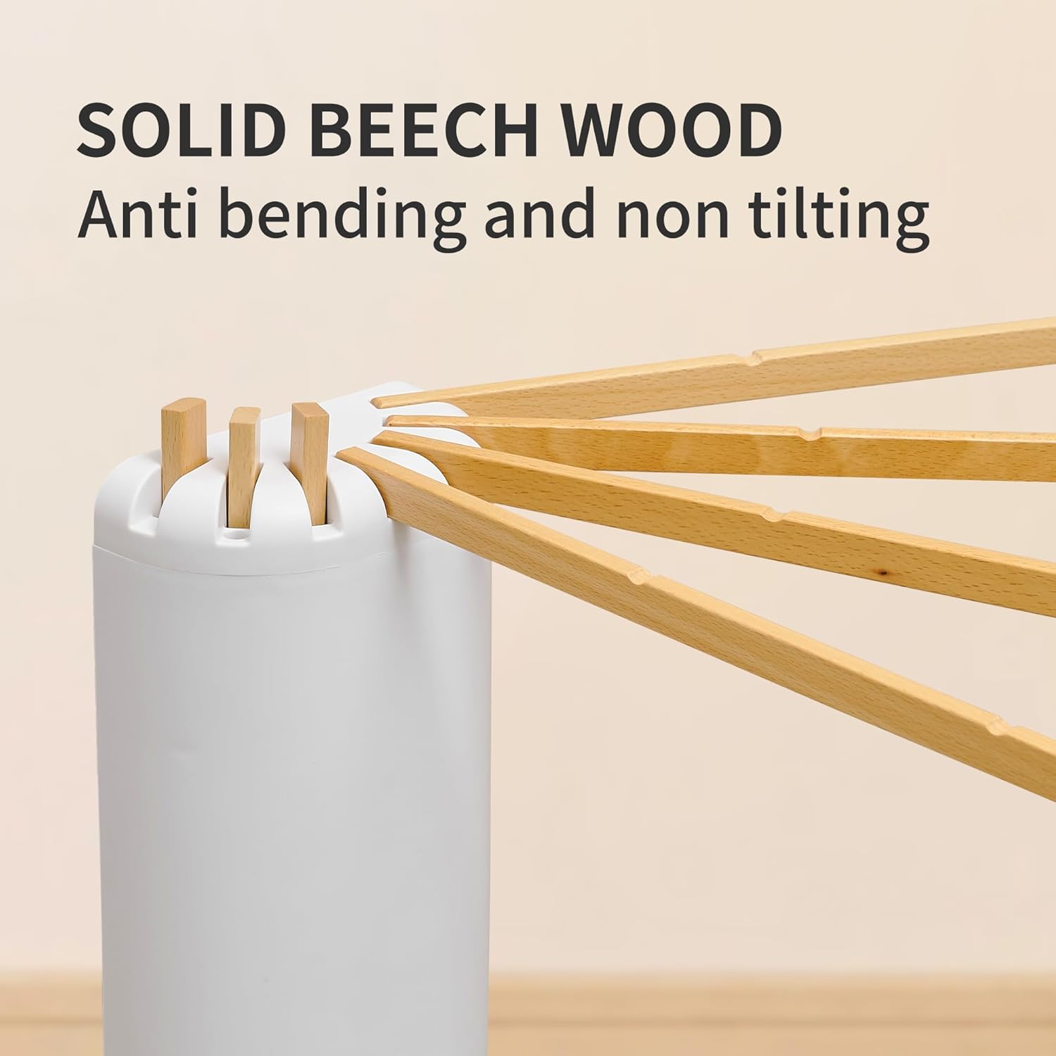 • Sturdy and Durable:Tripod clothes drying rack rods are made of Beech Wood, stronger, and more durable;Solid wood adds quality to life, and compact drying racks for laundry are strong and stable